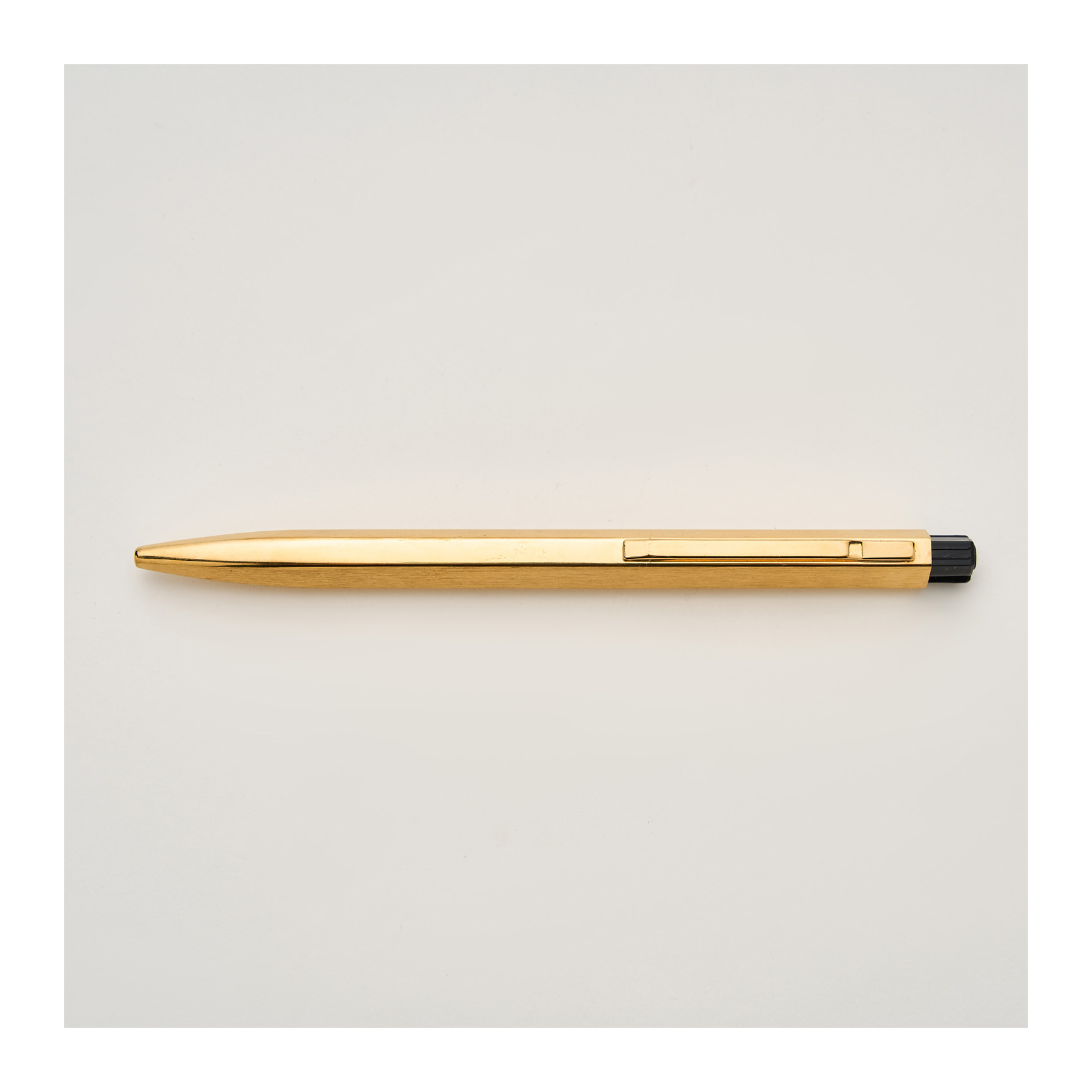 MONTBLANC «Leonardo». Bolígrafo en plaqué oro mate y brillo con pulsador en color negro, c.1990. Estimación:160 – 180€