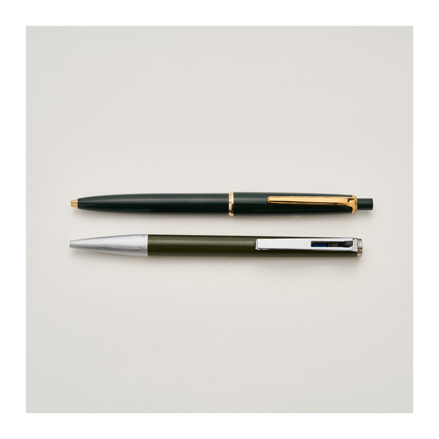 MONTBLANC. Dos bolígrafos modelos «Nº 39» en resina verde con detalles en plaqué oro y «Ballpix 780» en resina verde con detalles en acero mate y brillo. Estimación:150 – 170€
