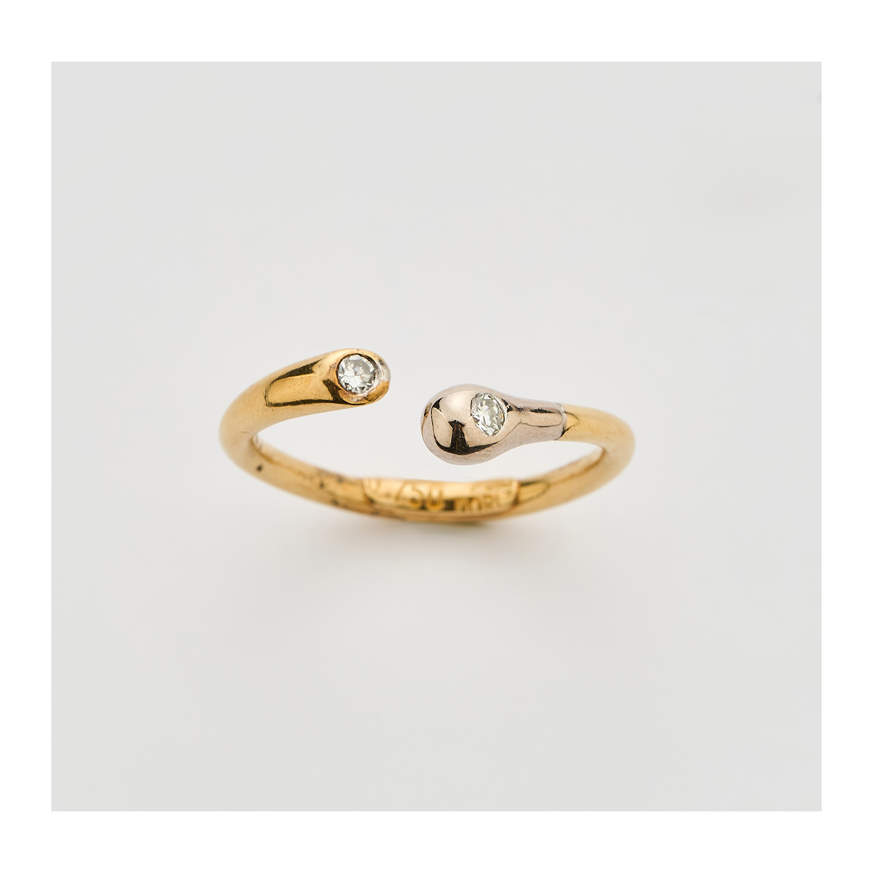 PUIG DORIA. Sortija diseño abierto en oro bicolor con remate de diamantes talla brillante engastados en chatón.