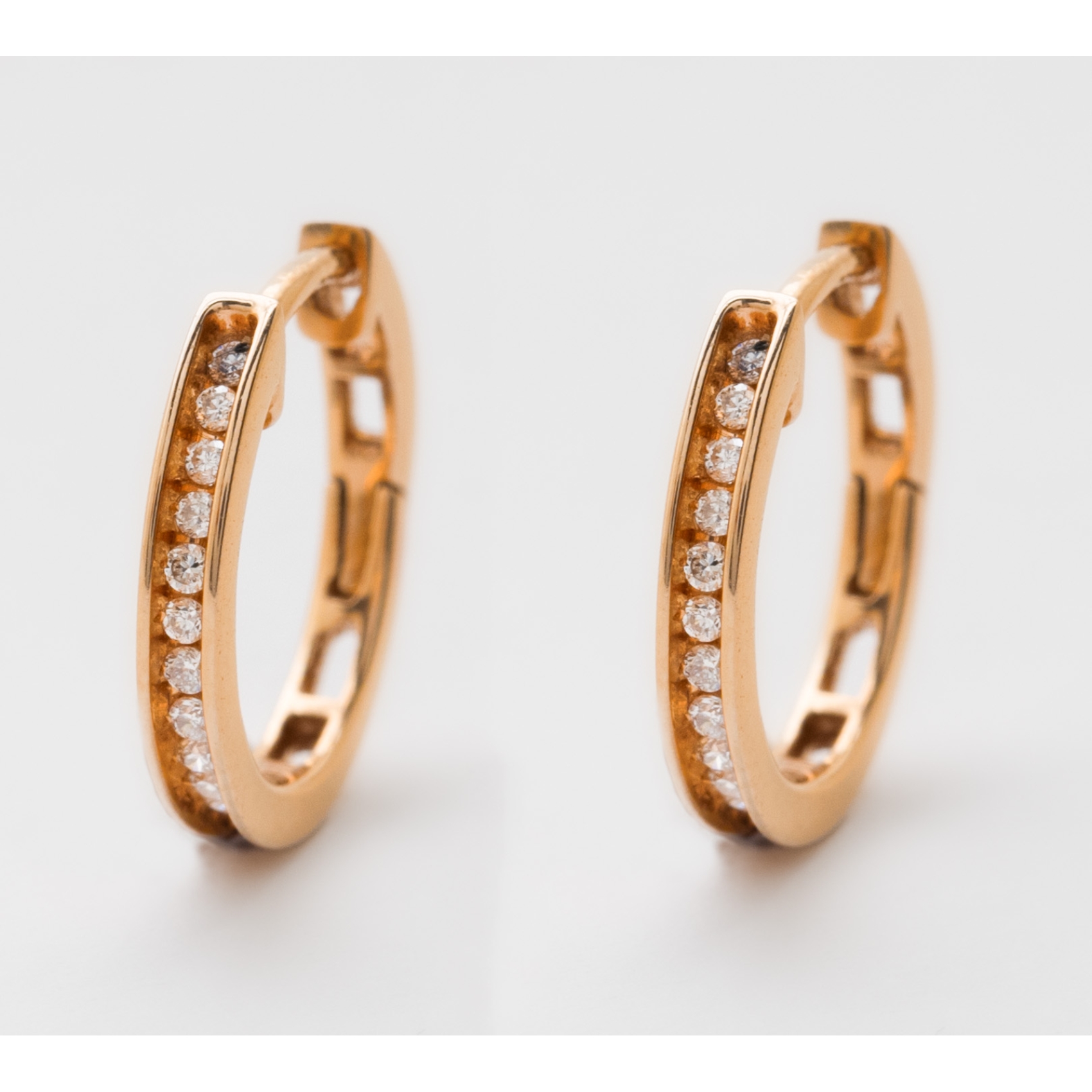 Pendientes criollas en oro con diamantes talla brillante.