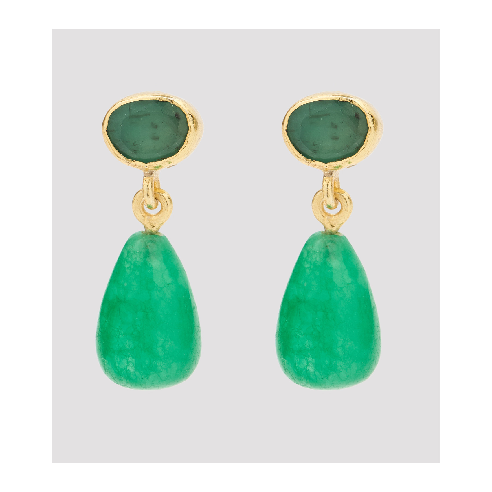 Pendientes en plata dorada con símiles de esmeralda tallas oval y briolette de 11 x 7,5 mm. Estimación:120 – 140€
