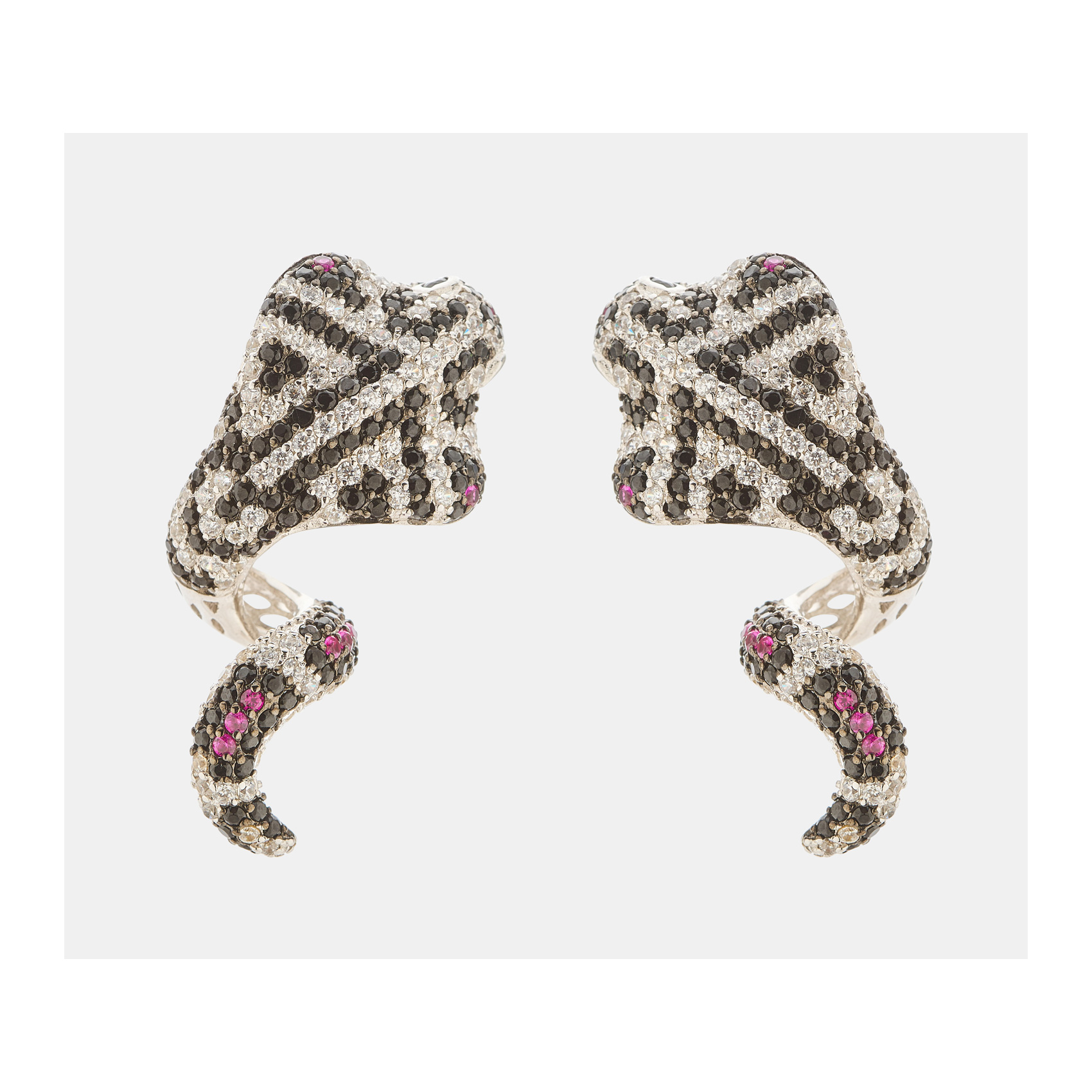 Pendientes diseño cobra en plata rodiada con circonitas negras, blancas y fucsias. Estimación:130 – 160€