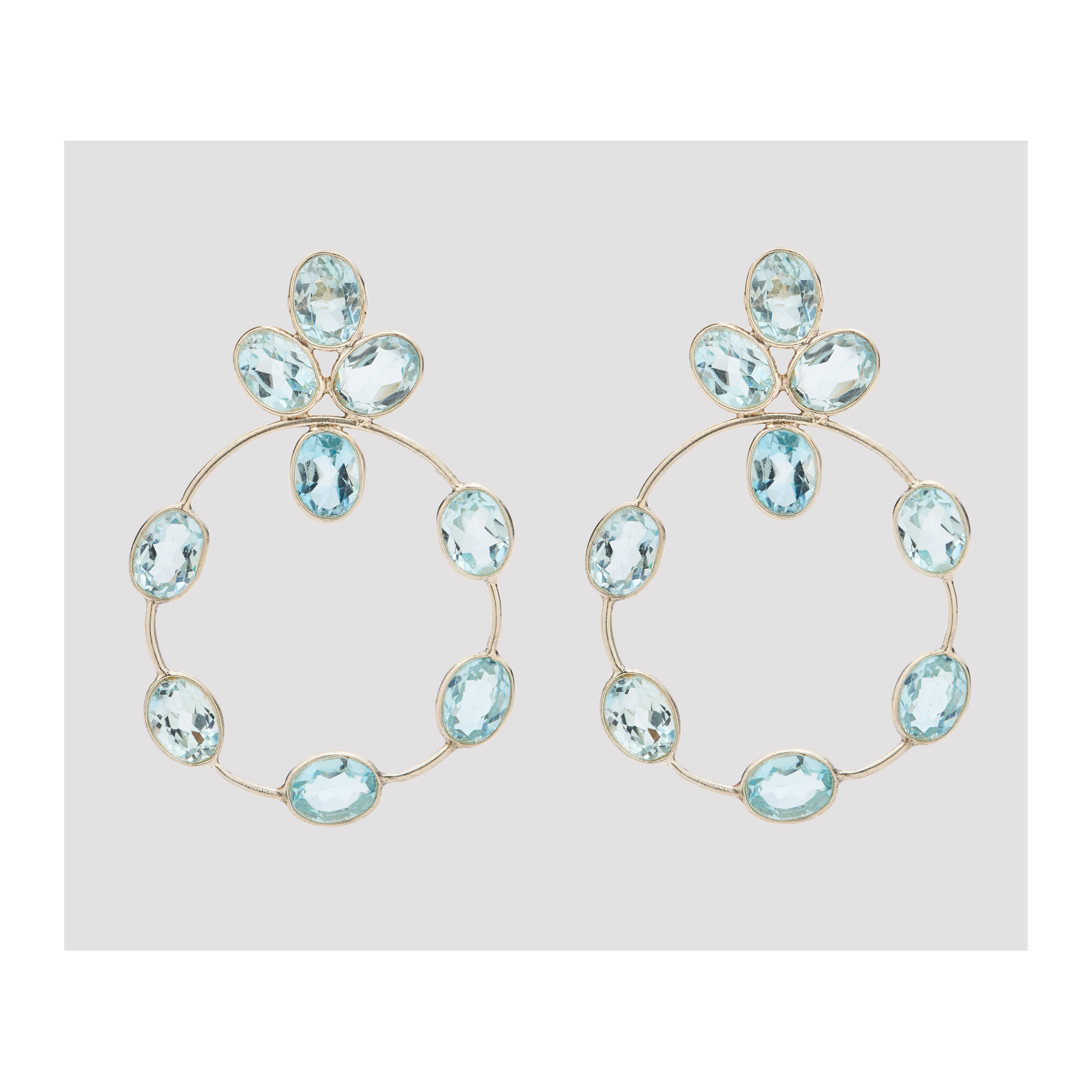 Pendientes en plata rodiada con símiles de topacio azul talla oval de 7 x 5 mm.