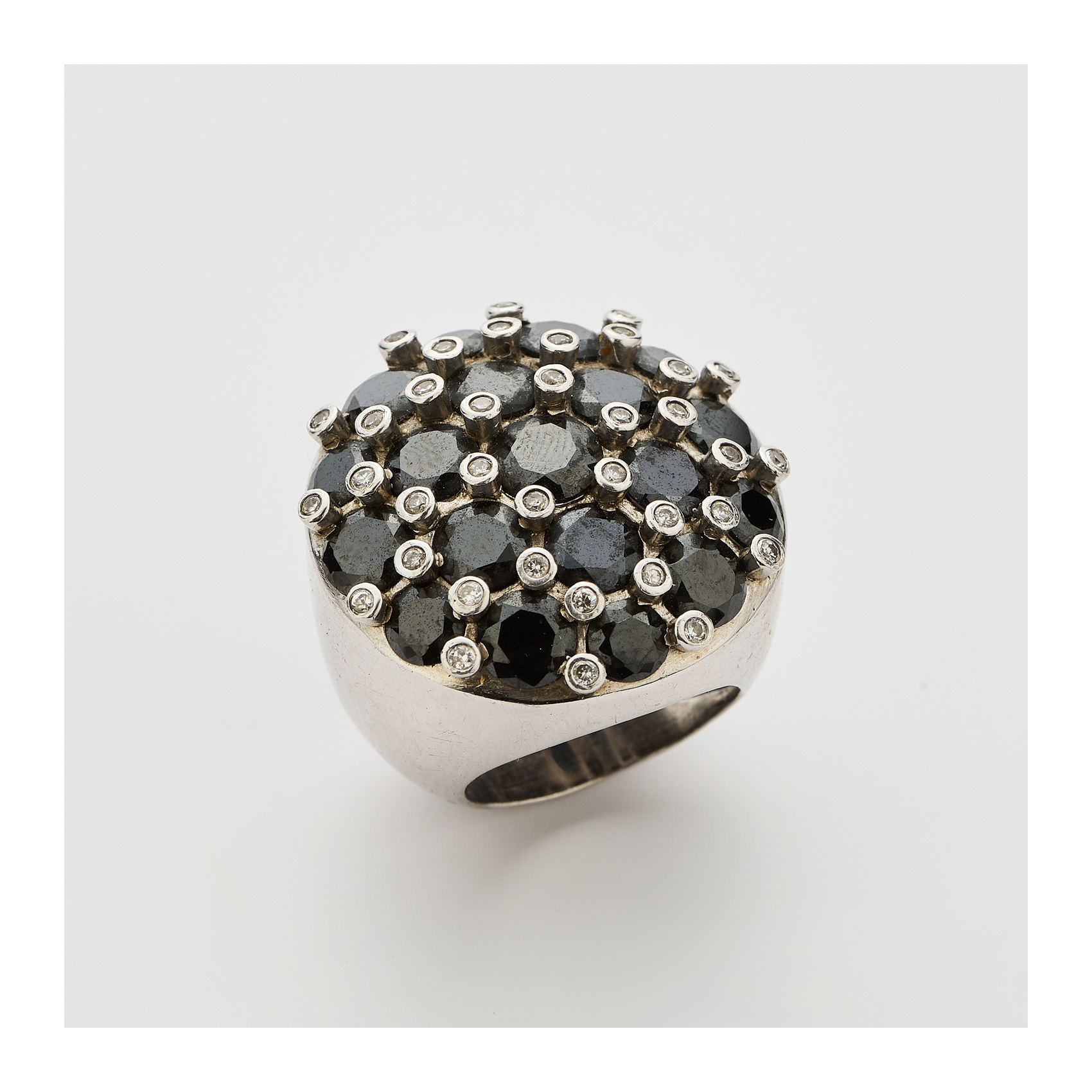 Sortija diseño circular en plata con símiles de ónix talla redonda y circonitas.