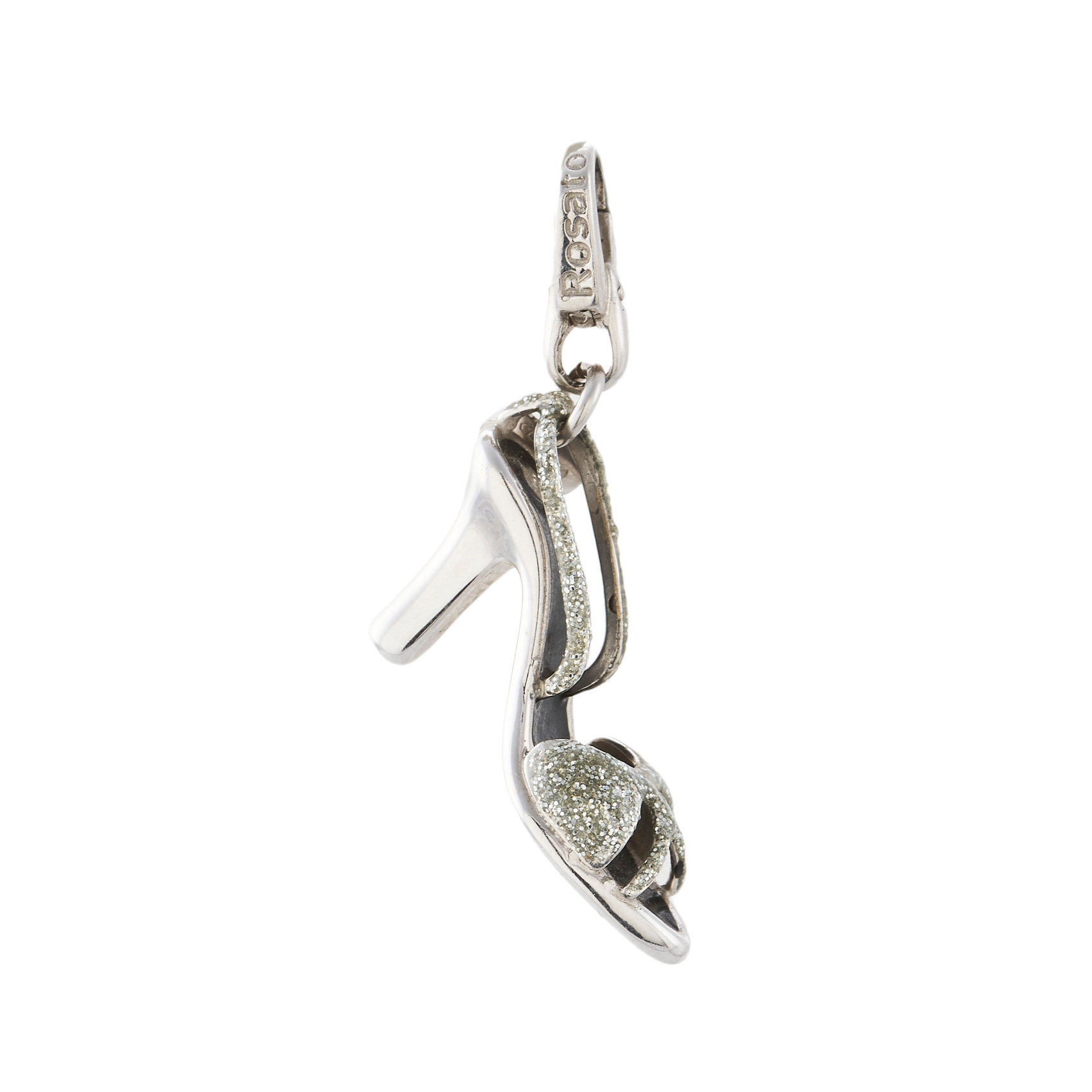 Charm diseño zapato de la firma Rosato en oro blanco con esmalte negro y plateado, 2,5 x 3 cm.