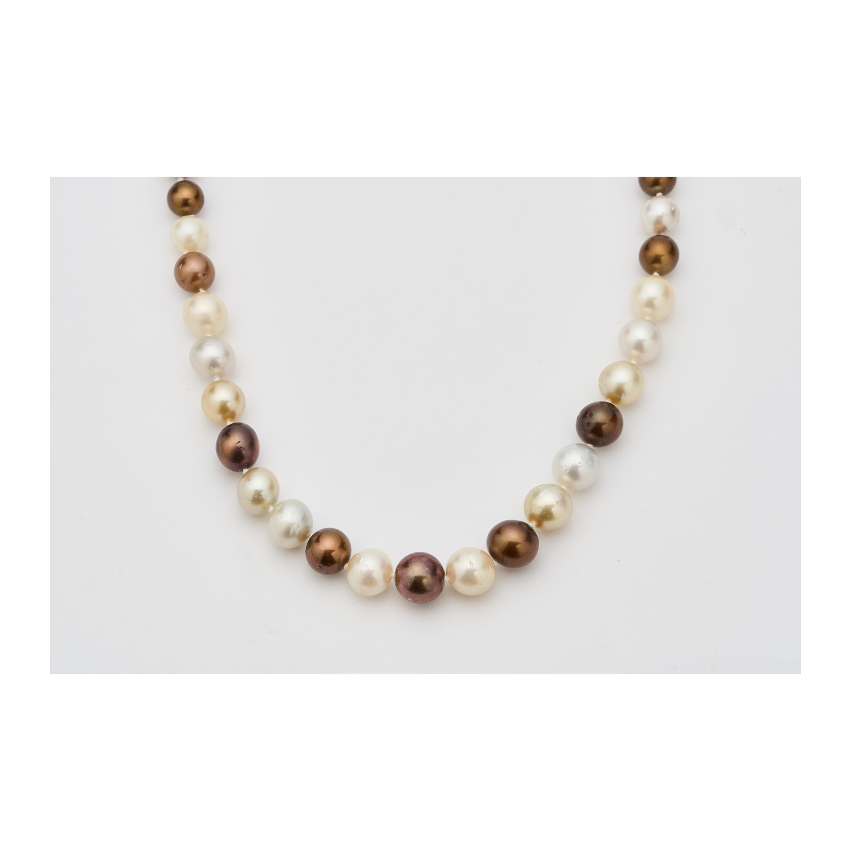 Collar de perlas cultivadas en degradé 13-8 mm. en tonalidades blanca, golden y brown con cierre reasa marinera en oro.