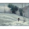 Joan Vila Puig (Sant Quirze del Vallès, Barcelona, 1890-Bellaterra, Barcelona, 1963) Paisaje nevado con figura. Óleo sobre tela adherida a cartón. Firmado. 33 x 41 cm. Estimación: 160 – 220 €.