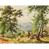 Vicenç Solé Jorba (Olot, Girona, 1904-El Brull del Montseny, Barcelona, 1946) Paisaje con figuras. Óleo sobre tela. Firmado y fechado en 1943. 47 x 61 cm. Estimación: 2800 – 3200 €.
