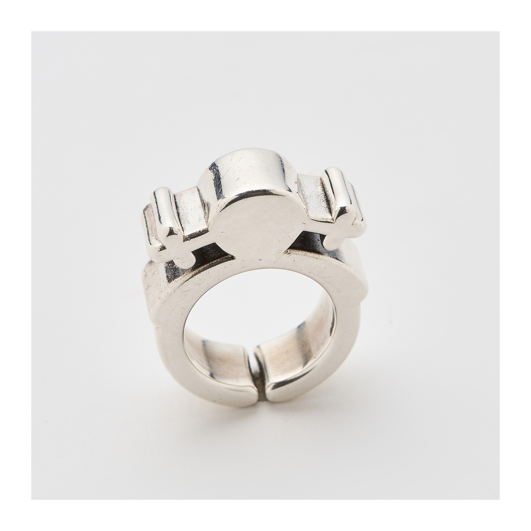 Sortija sello en plata con cuarzo blanco talla cuadrada