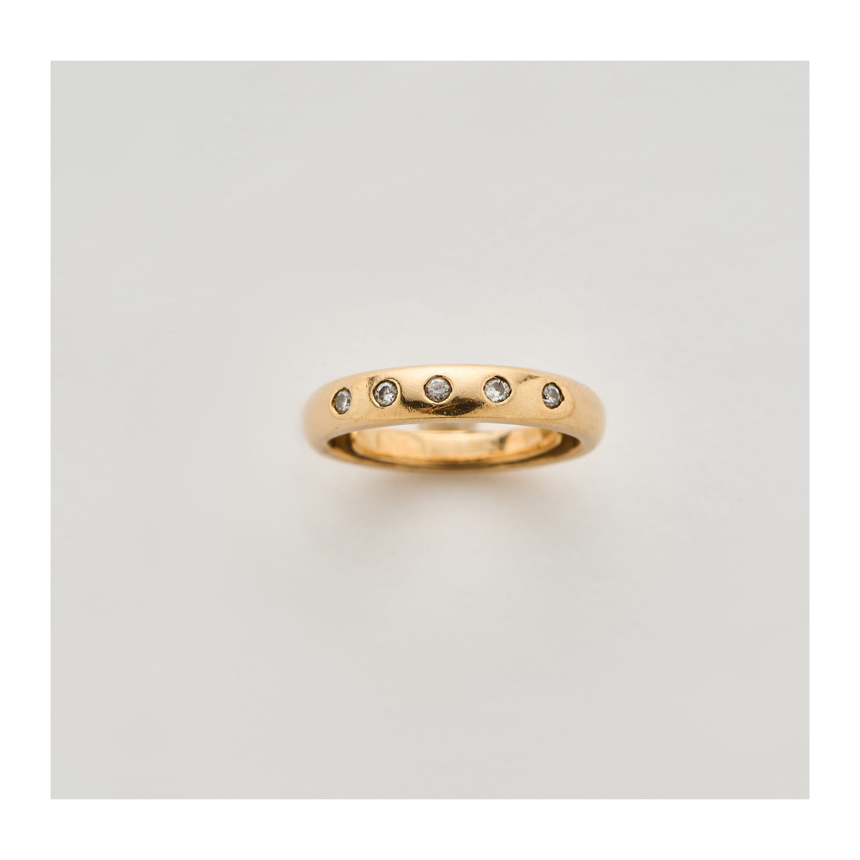 Sortija en oro con cinco diamantes en talla brillante engastados en chatón.