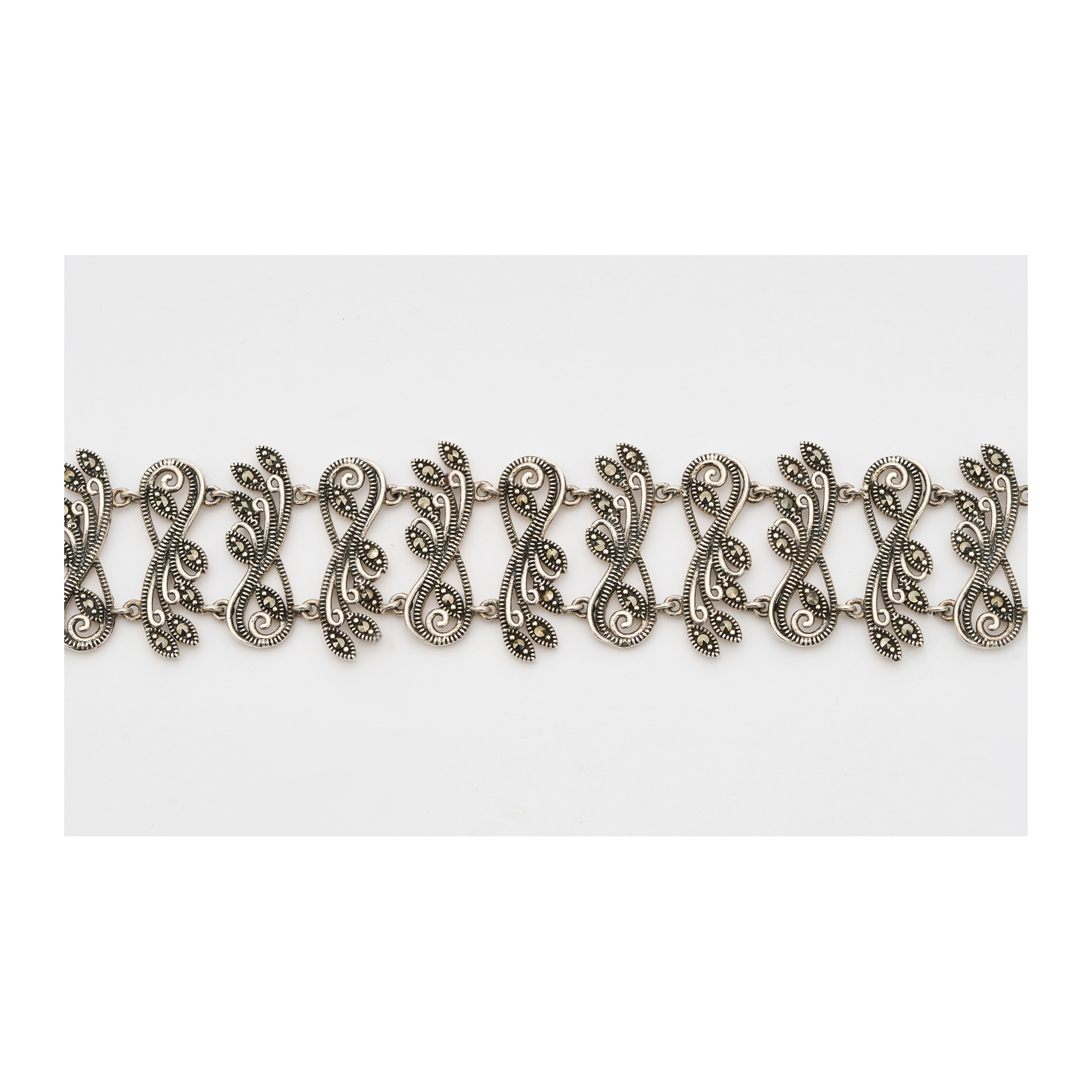 Pulsera calada con motivos entrelazados de marquesitas, 18,5 x 2,7 cm. Estimación:230 – 260€