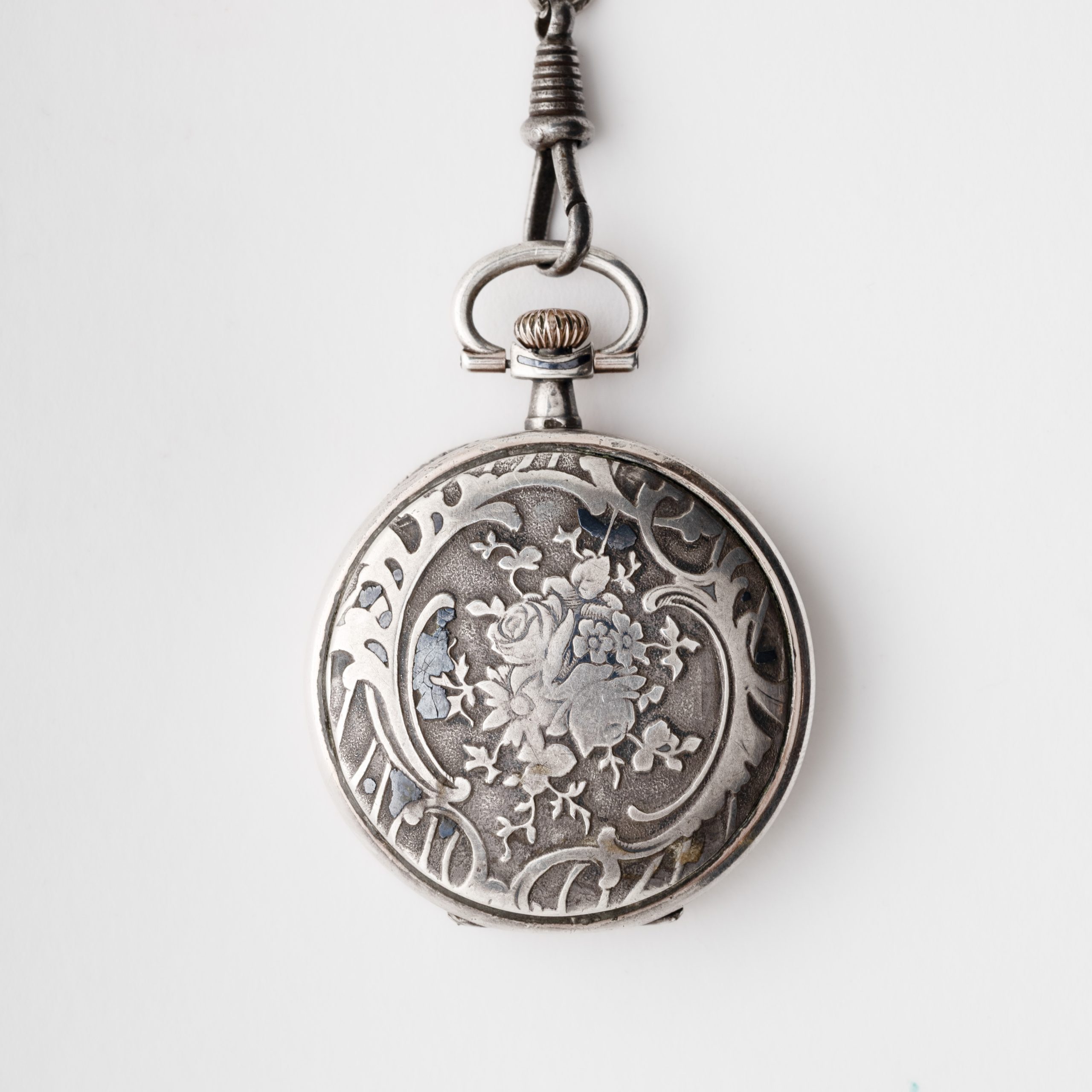 leontina en plata. Mecanismo a cuerda manual.