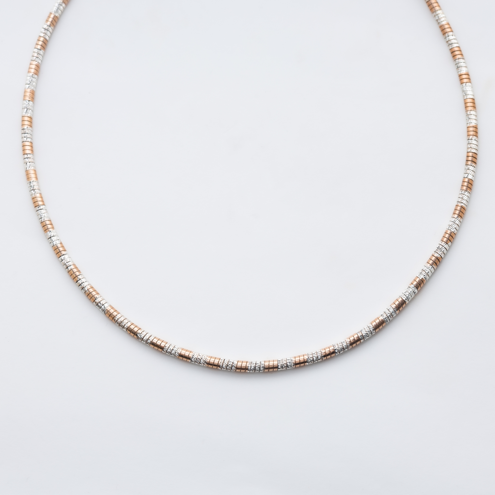 Gargantilla de cadena tubular en plata vermeil y diamantada alternadas.