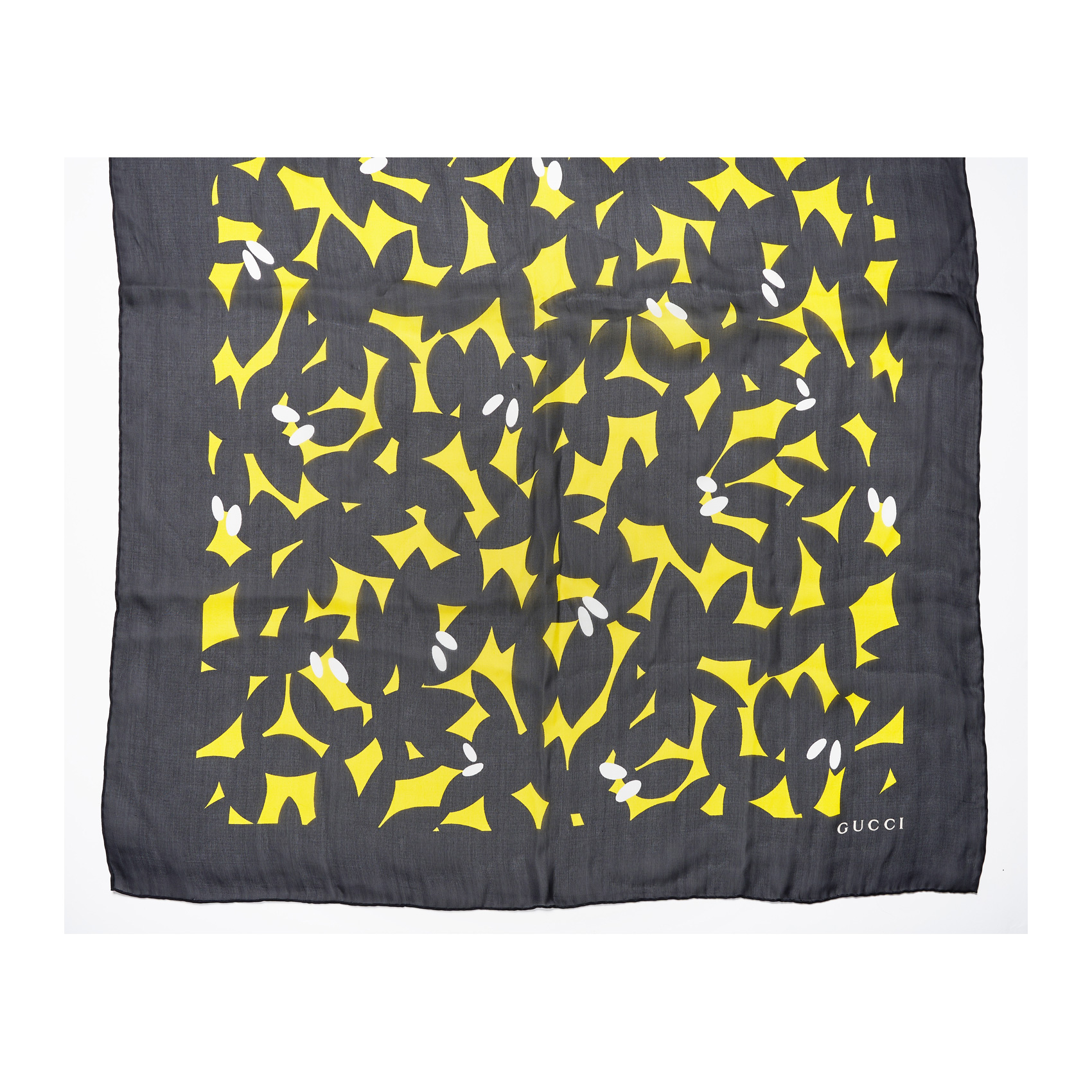 GUCCI. Chal en seda de tonalidades negras y amarillas con estampado floral. En perfecto estado.