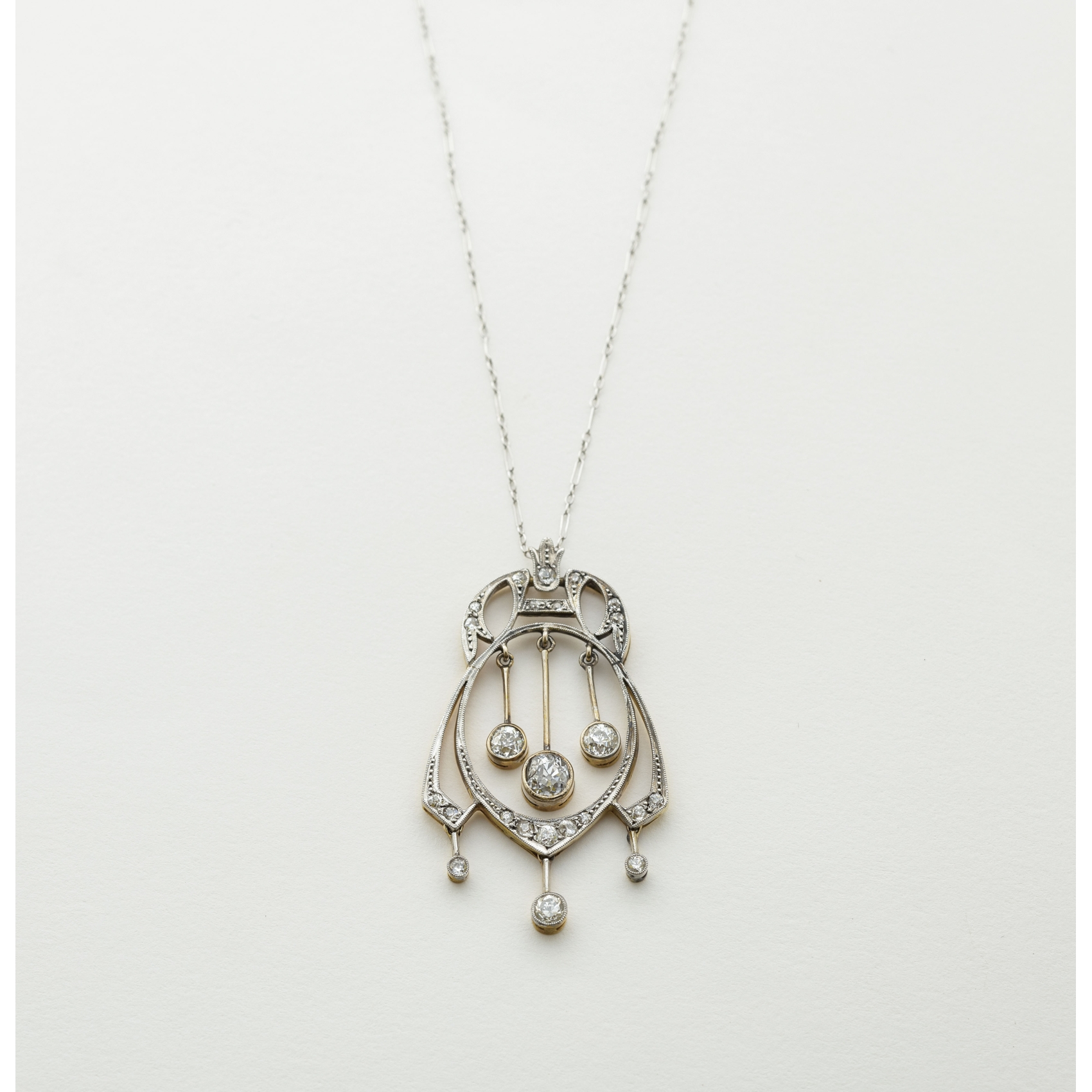 Gargantilla Belle Epoque en oro y vistas en platino con diamantes tallas brillante antigua y 8/8, c. 1910.