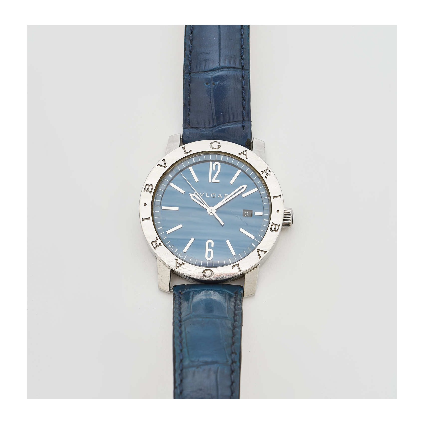 BULGARI. Reloj de pulsera unisex. En acero y correa de piel. Ref/Nº BB41S-L03920. Esfera azul con numeración arábiga y a trazos aplicados. Calendario fecha a las 3 . Bisel con el nombre de la marca. Mecanismo automático.