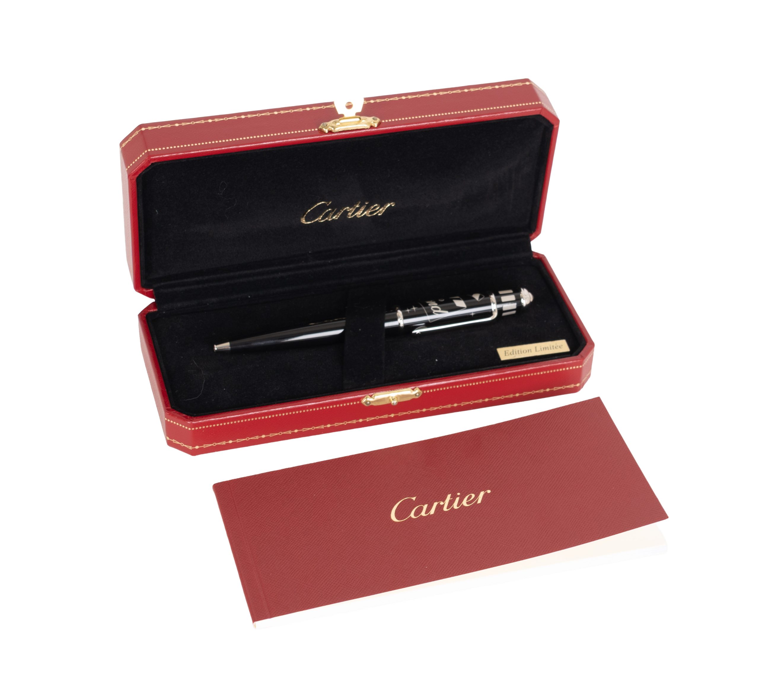 CARTIER «Diabolo Cinema». Bolígrafo edición limitada 0978/2008. Realizado en resina noble de color negro con diseño The End. Adjunta estuche y documentación. Estimación:0 – 0€