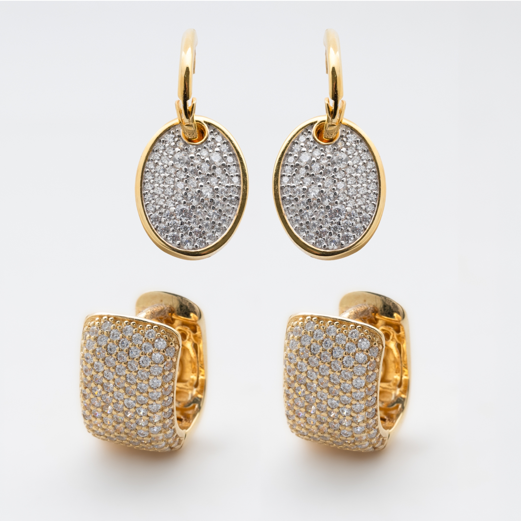 Dos pares de pendientes en plata dorada y circonitas. Estimación:200 – 260€