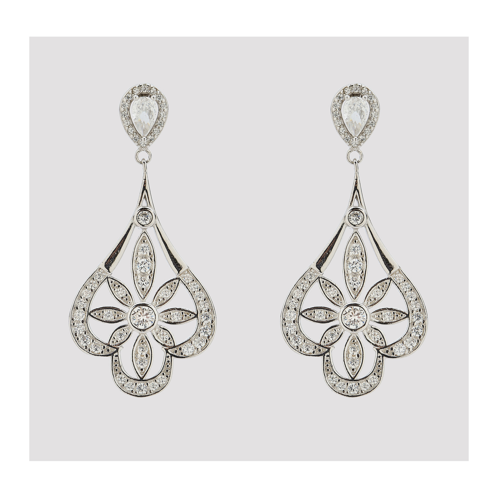 Pendientes calados estilo ArtDeco en plata y circonitas. Estimación:140 – 160€
