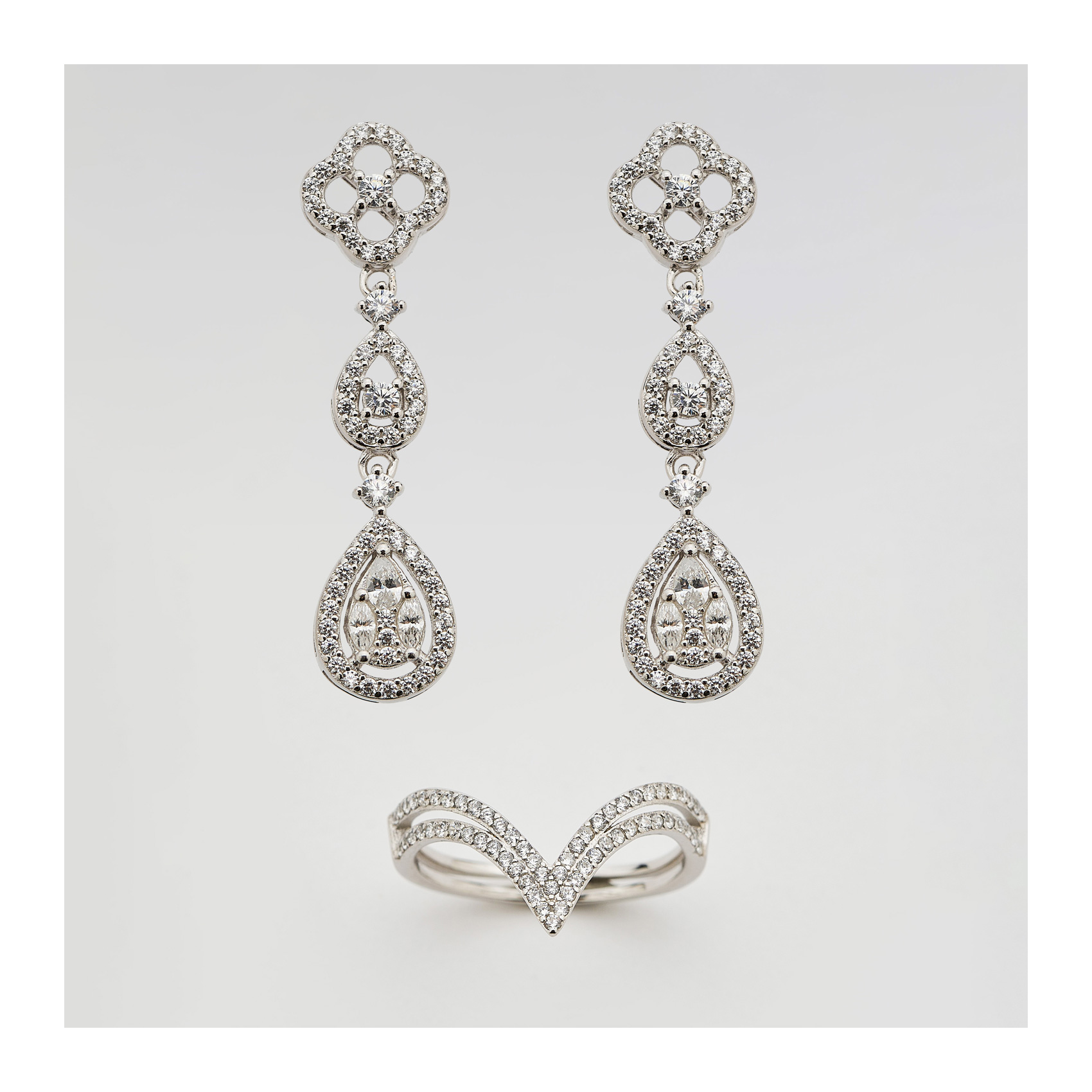 Pendientes y sortija en plata con circonitas engastadas en garras.