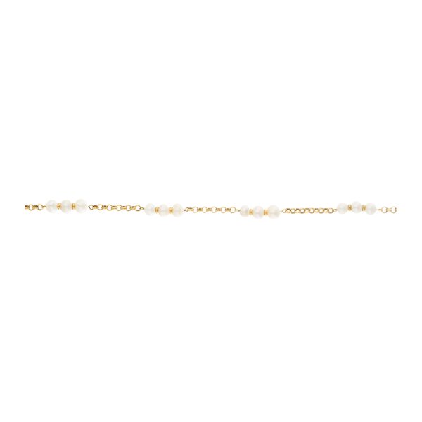 Pulsera de cadena modelo rolo en oro alternada por tríos de perlas cultivadas de 6 mm.