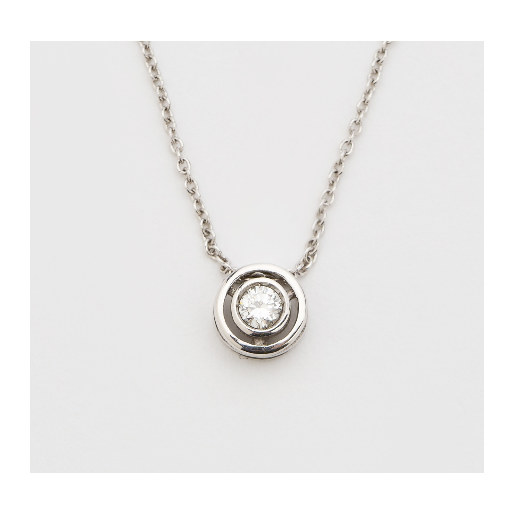 Gargantilla en oro blanco con diamante talla brillante engastado en chatón.