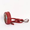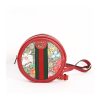 GUCCI. Pequeña mochila circular de la colección «Flora Ophidia» en lona con estampado floral y anagrama de la firma con ribetes en piel de becerro de tonalidad roja. Presenta ribete con la bandera distintiva de la marca con cadena y herrajes en dorado. En perfecto estado.