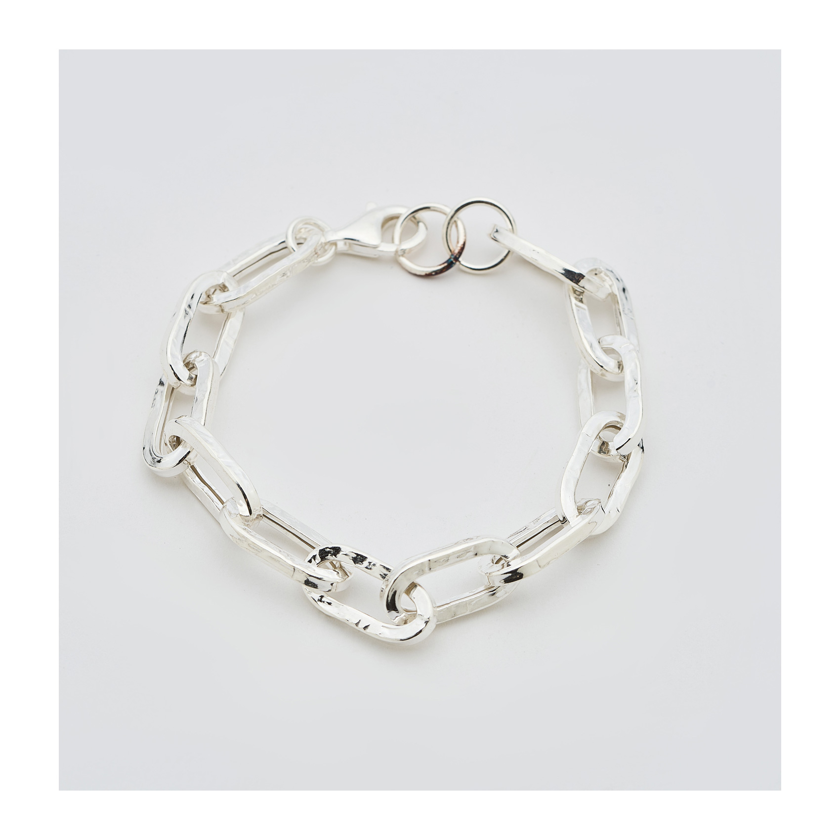 Pulsera de eslabones forjados en plata con cruces y cuadrados de topacios azules