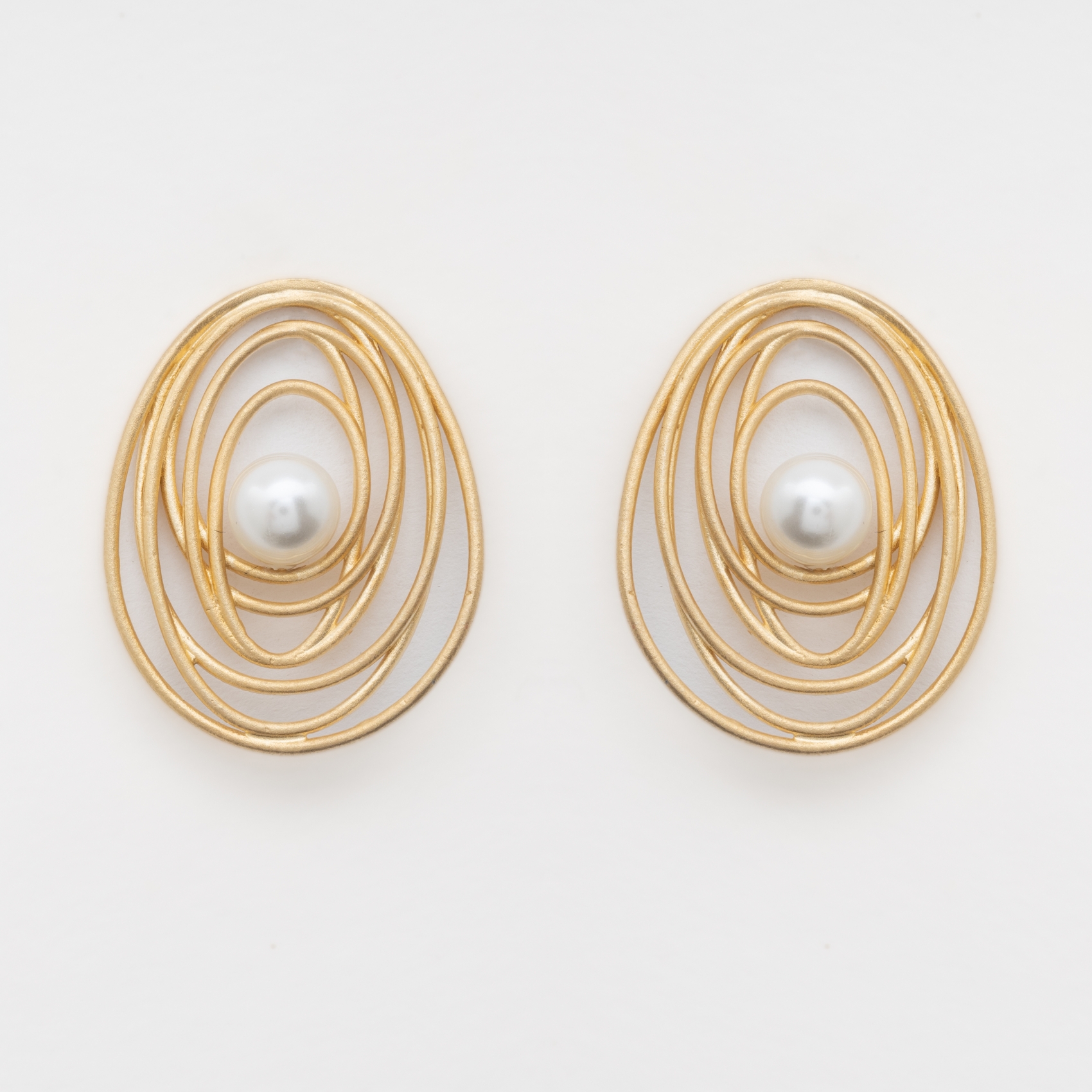 Pendientes calados diseño en espiral con perla Majórica de 8 mm.