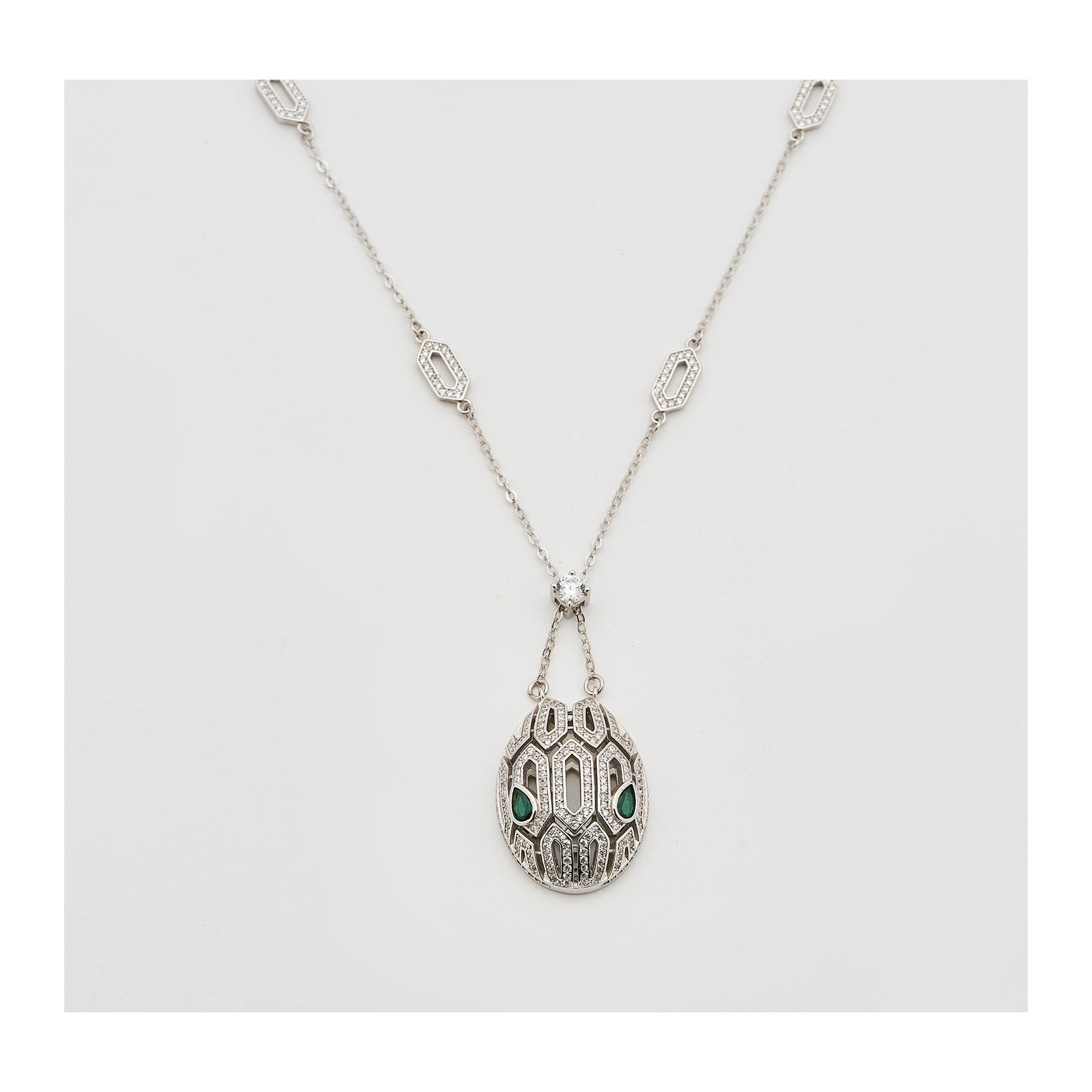 Gargantilla estilo Cartier diseño cabeza de serpiente en plata con circonitas y símiles de esmeralda.
