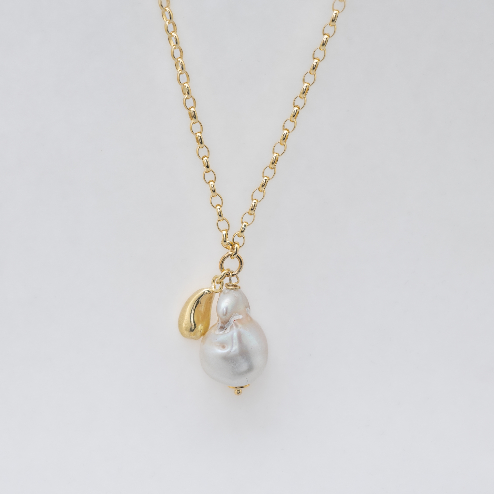 Gargantilla en plata dorada con motivo diseño lágrima y perla barroca de 22 x 14 mm.
