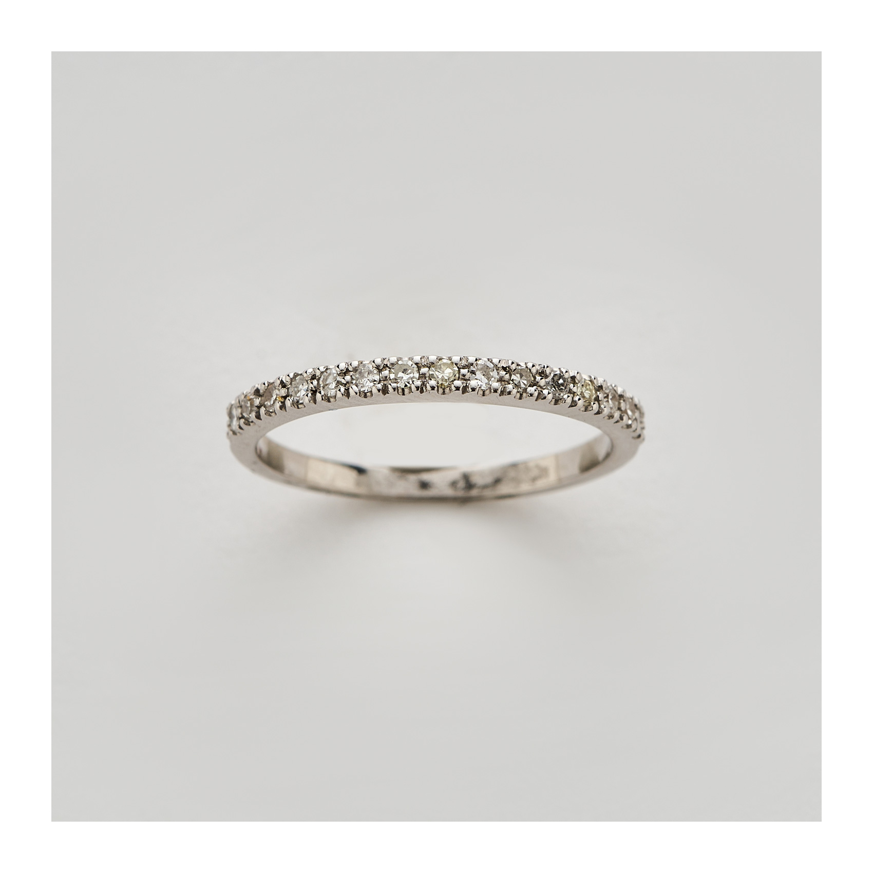 Sortija media alianza en oro blanco con diamantes talla 8/8 engastados en garras.