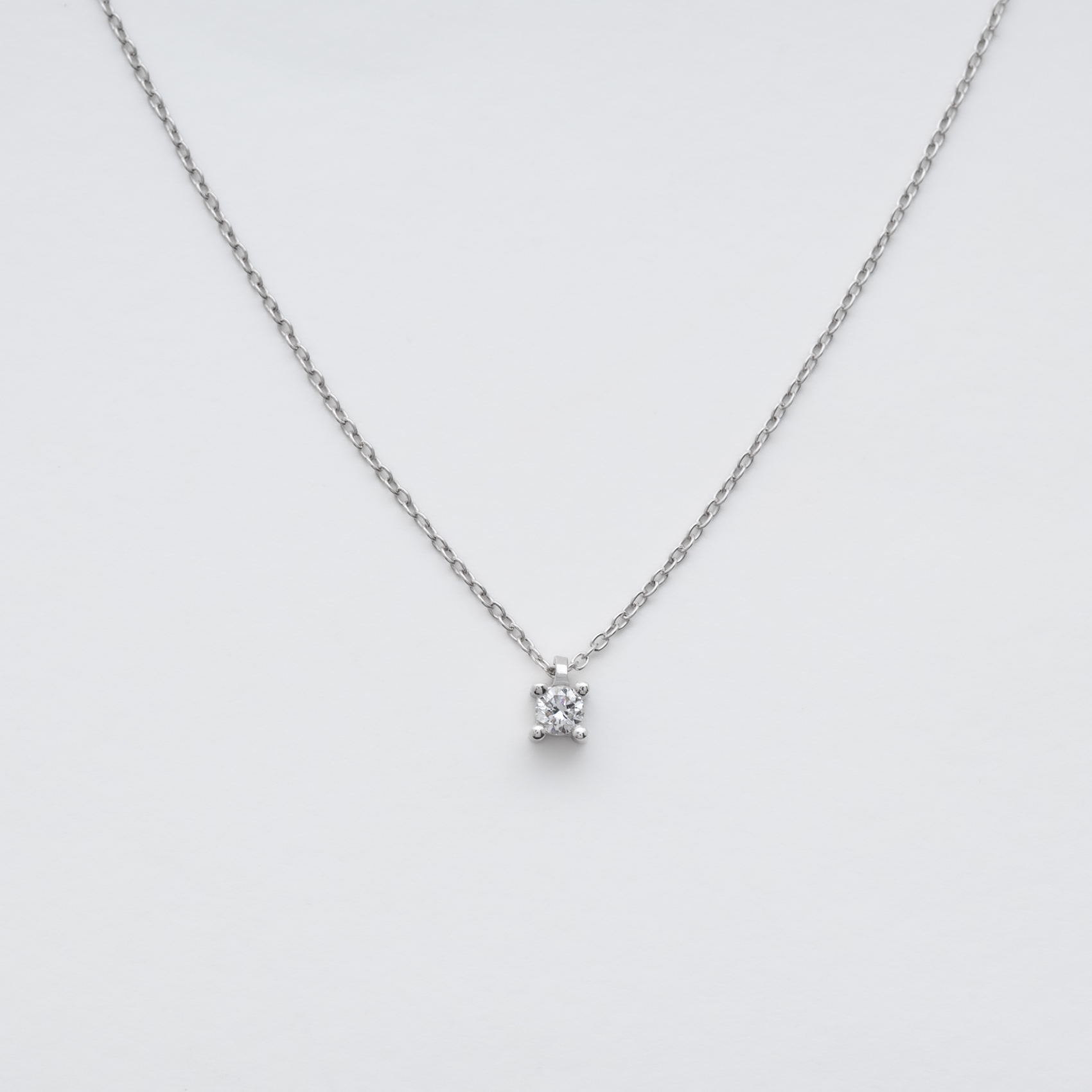 Gargantilla en oro blanco con diamante talla brillante engastado en garras.