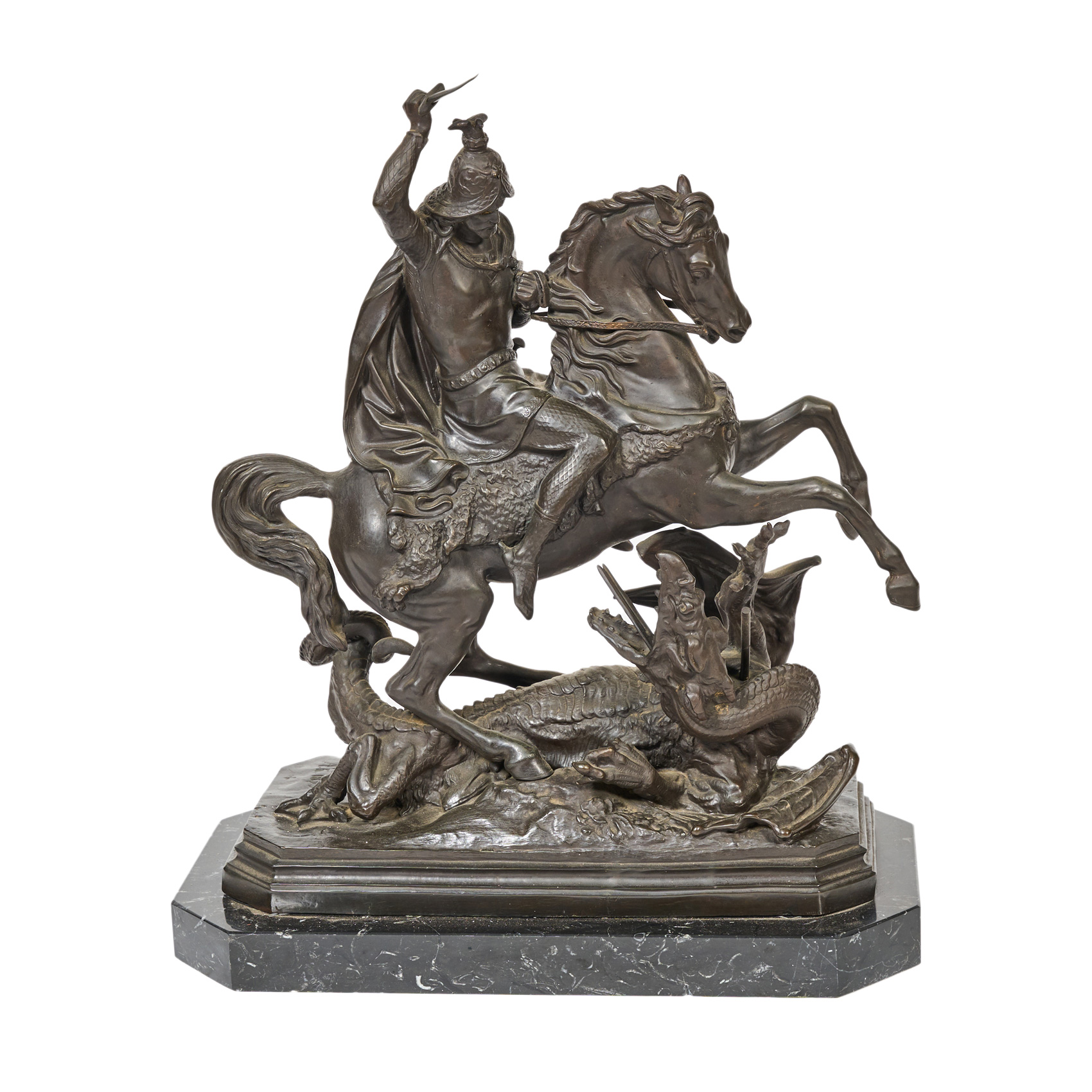 Escultura en bronce patinado sobre peana en mármol negro veteado. Firmada con anagrama y fechada en 1853.