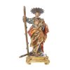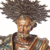 Escultura en madera de nogal tallada, policromada al temple en estofado y esgrafiado y dorada al agua sobre peana en madera rematada con hojas de acanto. Nimbo en metal plateado. Adjunta estudio realizado por Iván Rega e Isidre Puig, doctores en Historia del Arte y coordinadores del Centro de Arte de Época Moderna de Lleida, en colaboración con la Universitat de Lleida.