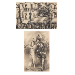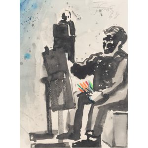 Dibujo a rotulador sobre dos hojas de papel. Firmado y fechado en 1975.