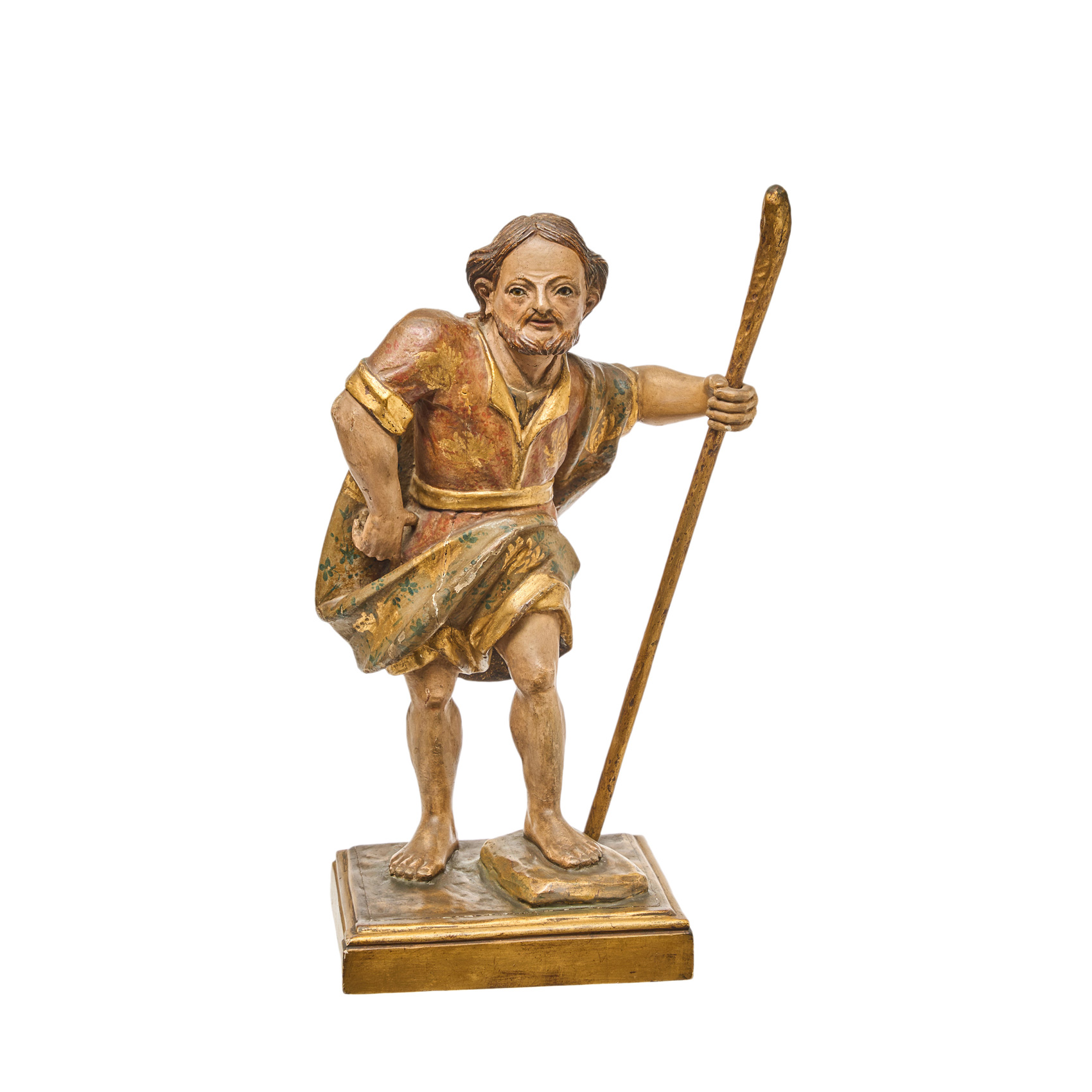 Escultura en madera tallada, policromada y parcialmente sobredorada.