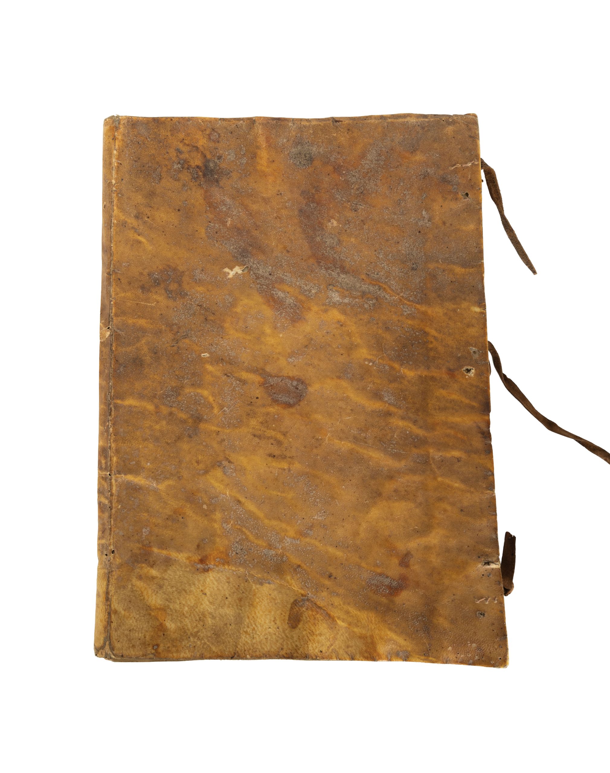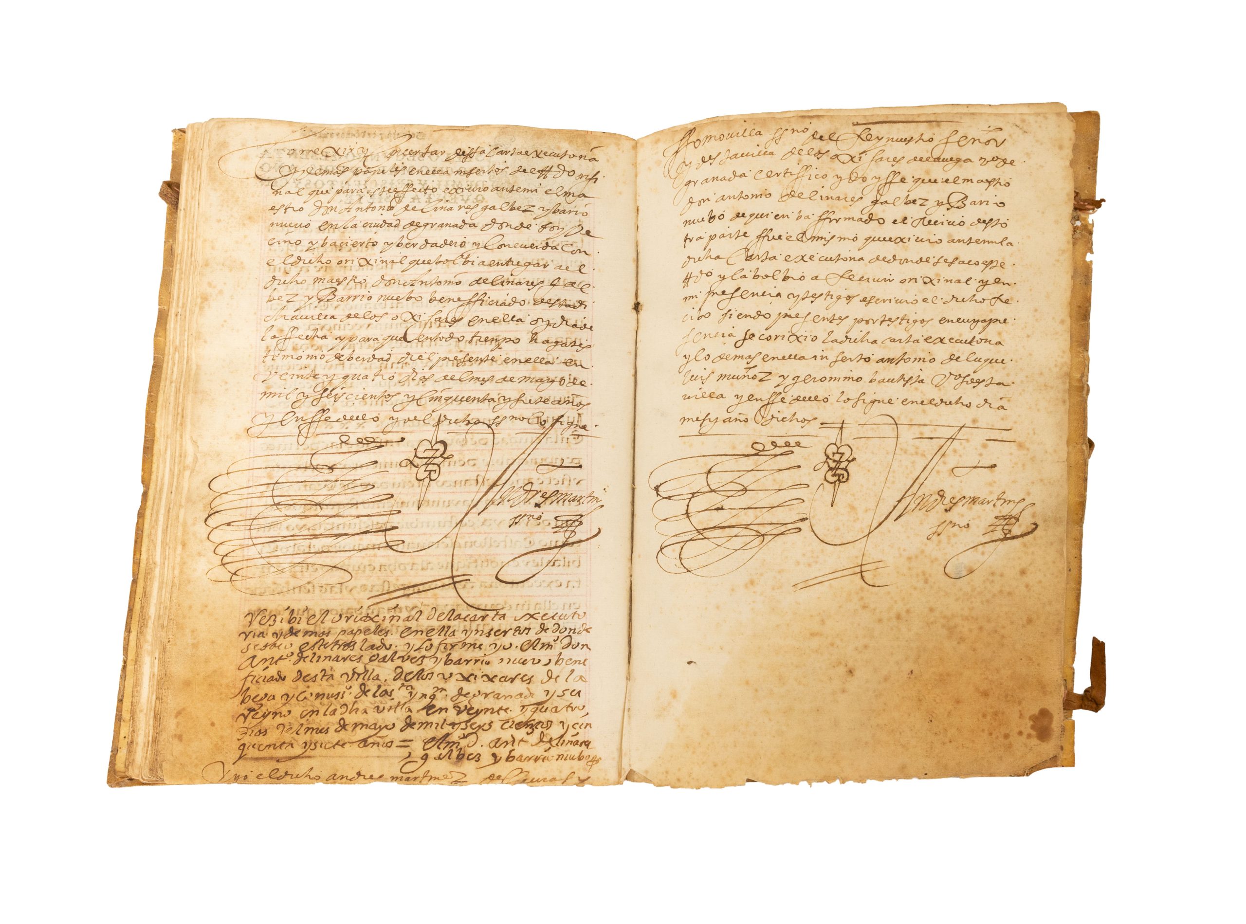 Carta ejecutoria rubricada en letra renacentista sobre papel. Iluminada con témpera y pan de oro pintada a mano con representación de escudo heráldico. Encuadernada en piel.