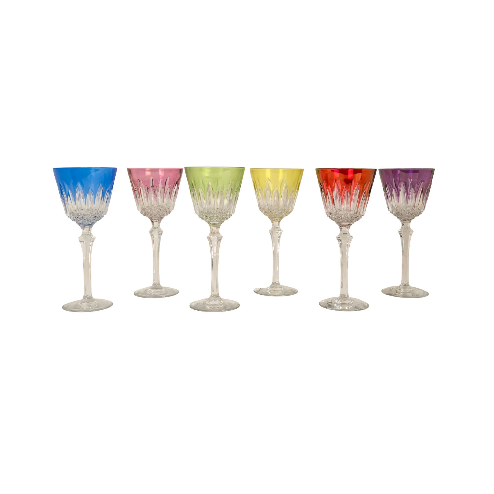 Juego de seis copas en cristal tallado y doblado en diversas tonalidades, s.XX.