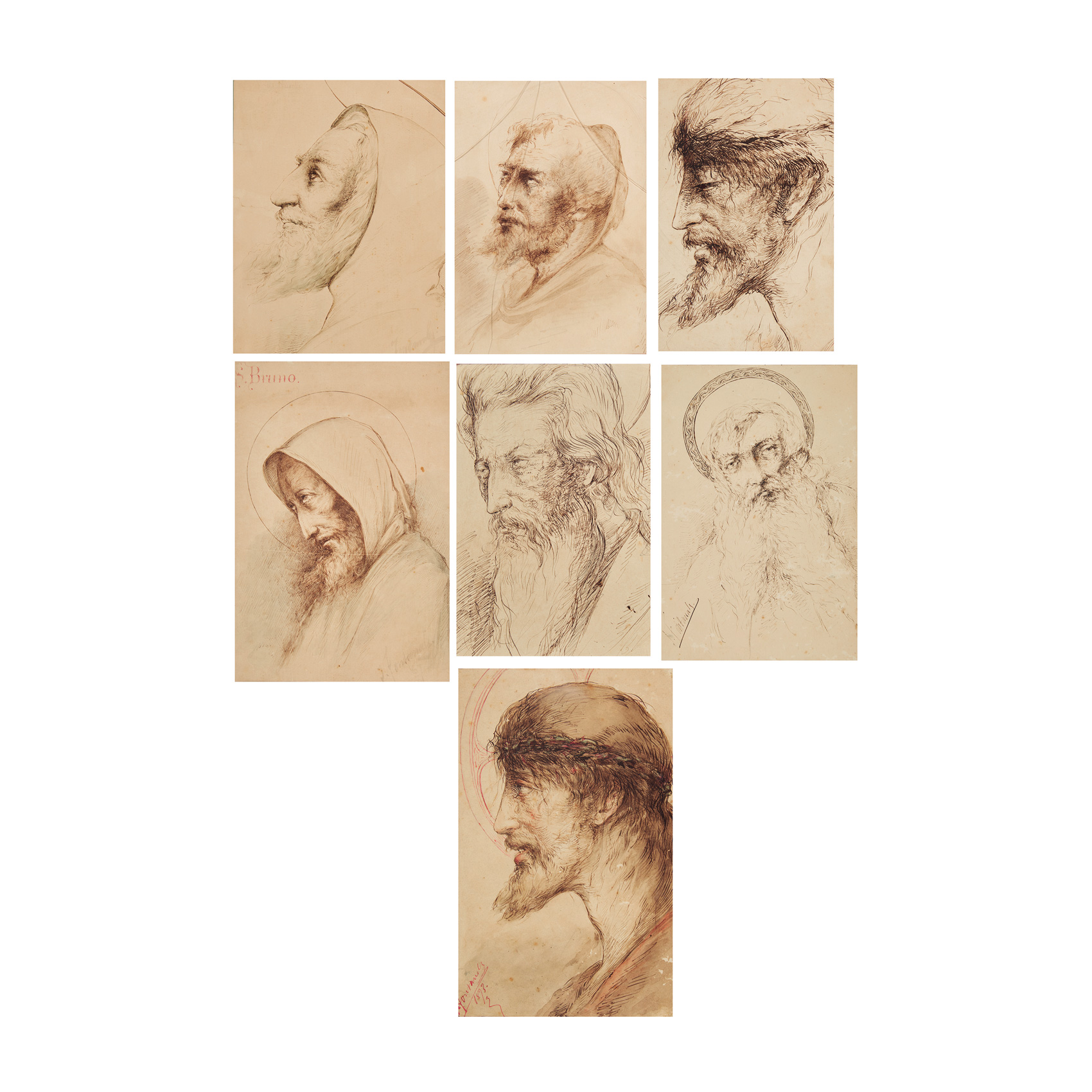 Lote de siete dibujos a plumilla sobre papel. Firmados J. Fontanals cuatro. Fechado en 1893 uno.