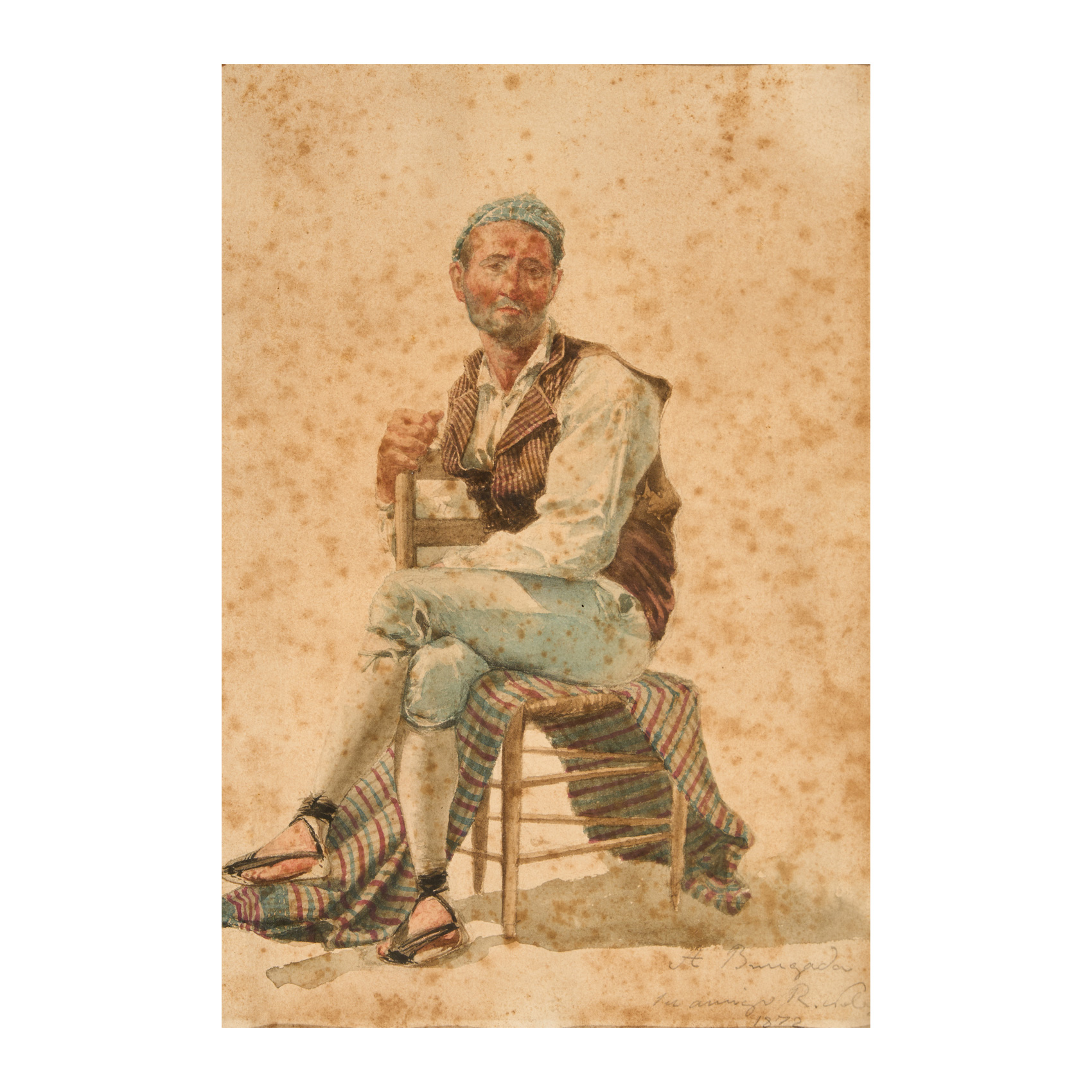 Dibujo a acuarela sobre papel. Firmado A. Brugada, dedicado y fechado en 1872.