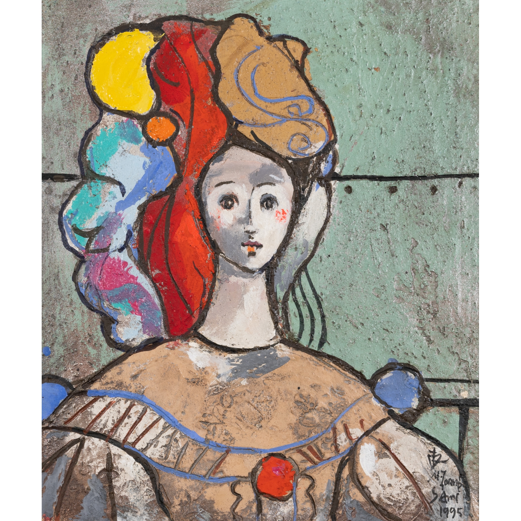 Técnica mixta sobre tabla. Firmado y fechado en 1995.