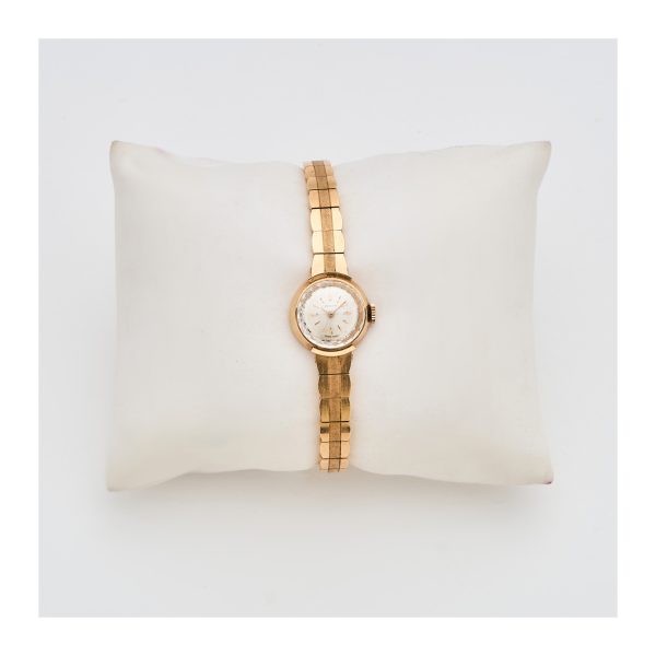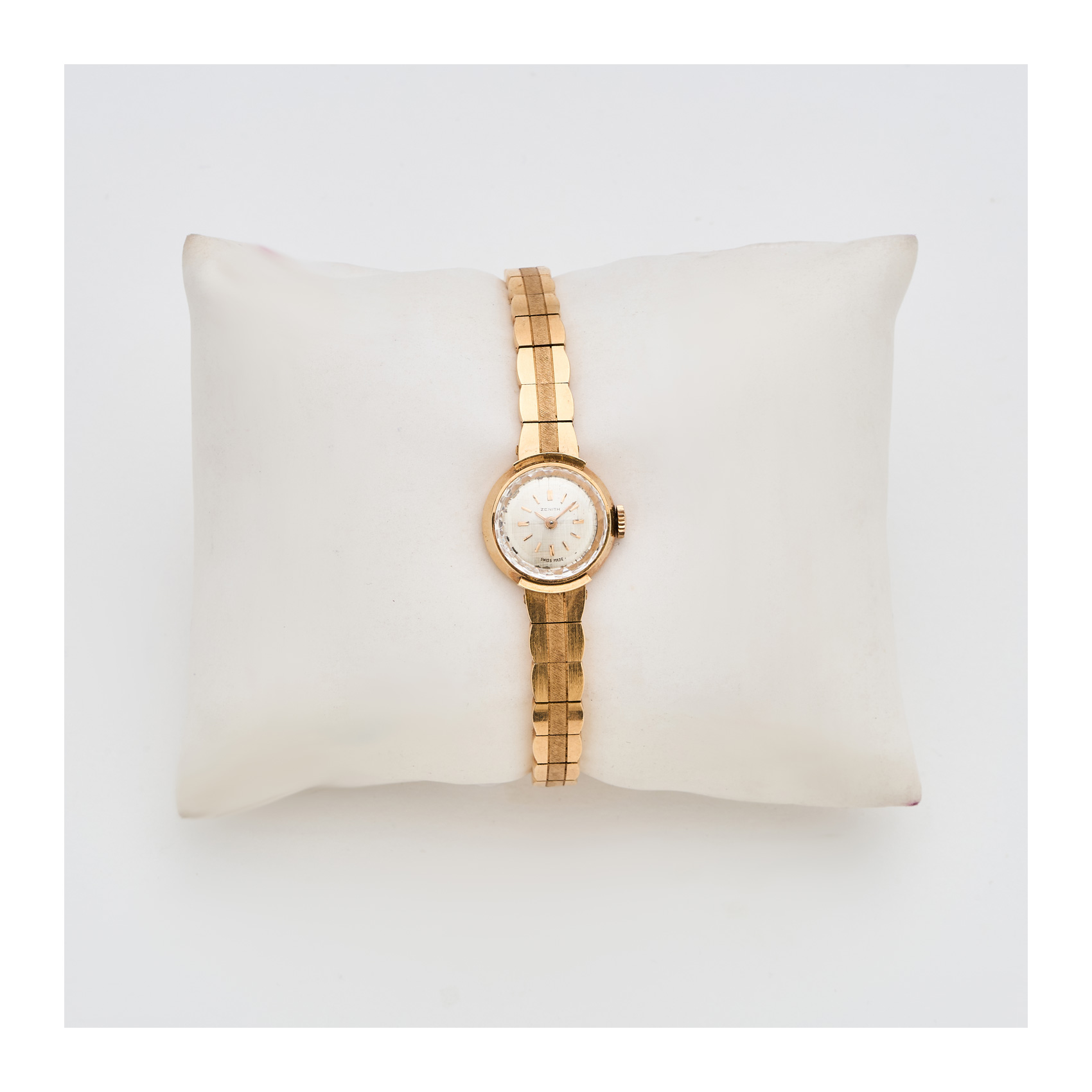 ZENITH. Reloj de pulsera para señora en oro mate y brillo. Esfera satinada con numeración a trazos aplicados. Mecanismo de cuerda manual.
