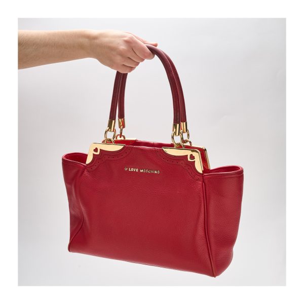 LOVE MOSCHINO. Bolso en cuero de tonalidad roja con cierre de cremallera con herrajes y logotipo en metal dorado. En perfecto estado. Adjunta funda dustbag original.
