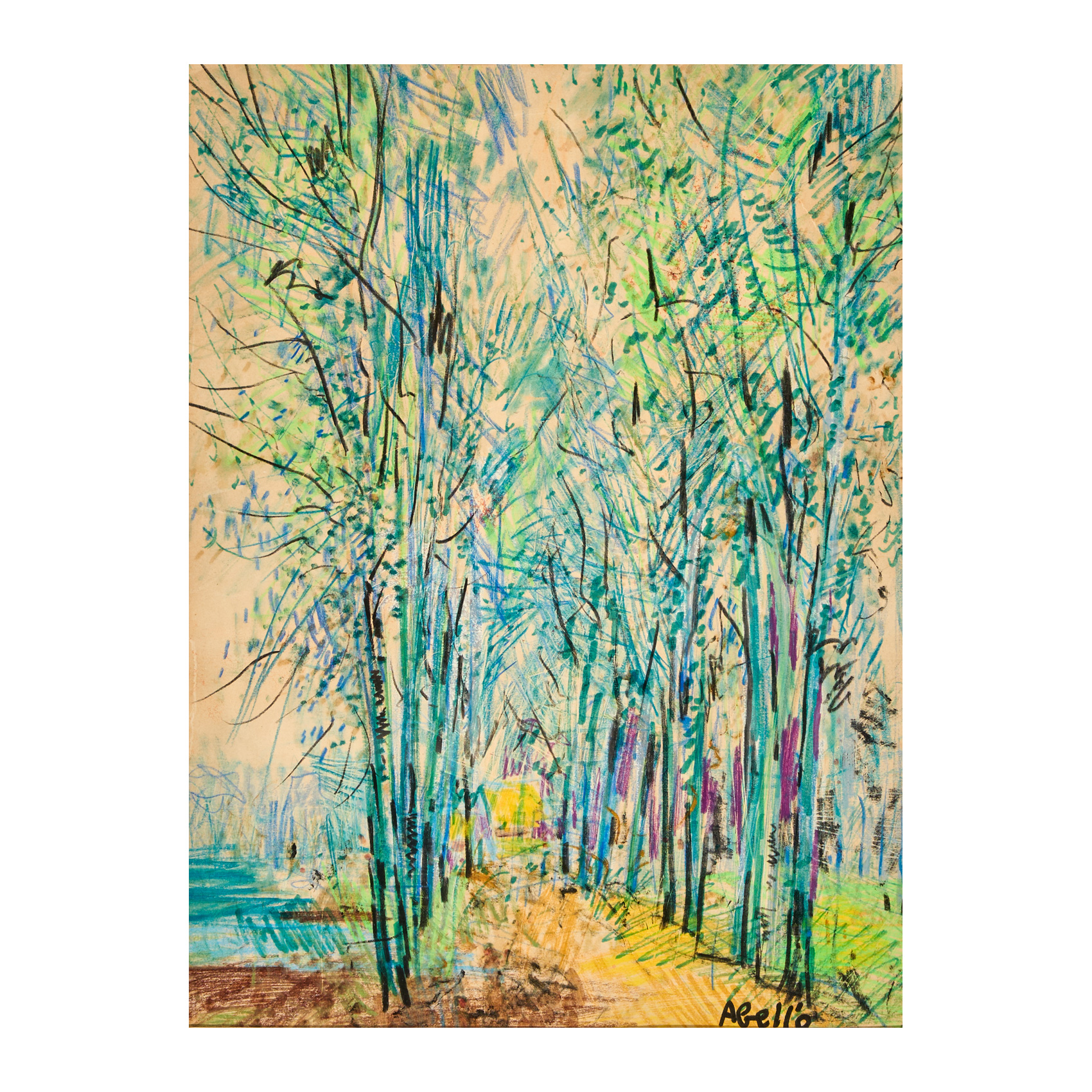 Dibujo a ceras de colores sobre papel. Firmado.