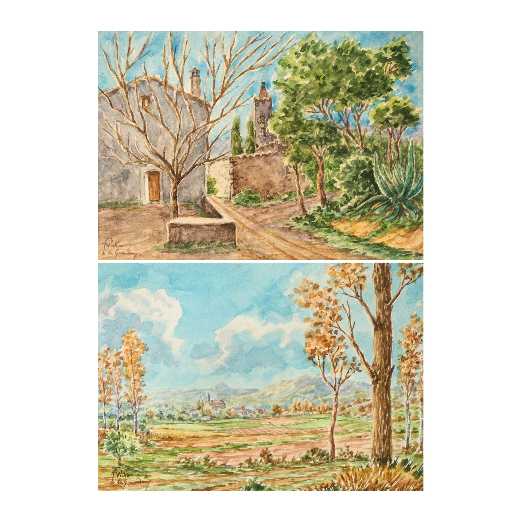 Pareja de acuarelas sobre papel. Firmadas.