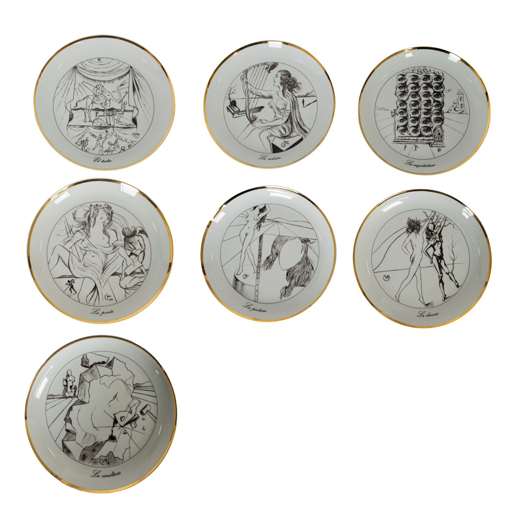 Juego de los siete platos en porcelana de Bidasoa esmaltada con estampaciones de las alegorías a la Música, la Arquitectura, la Pintura, la Danza, la Escultura, la Poesía y el Teatro. Tiraje de 5000 ejemplares. Presentan certificado de autenticidad estampado al dorso.