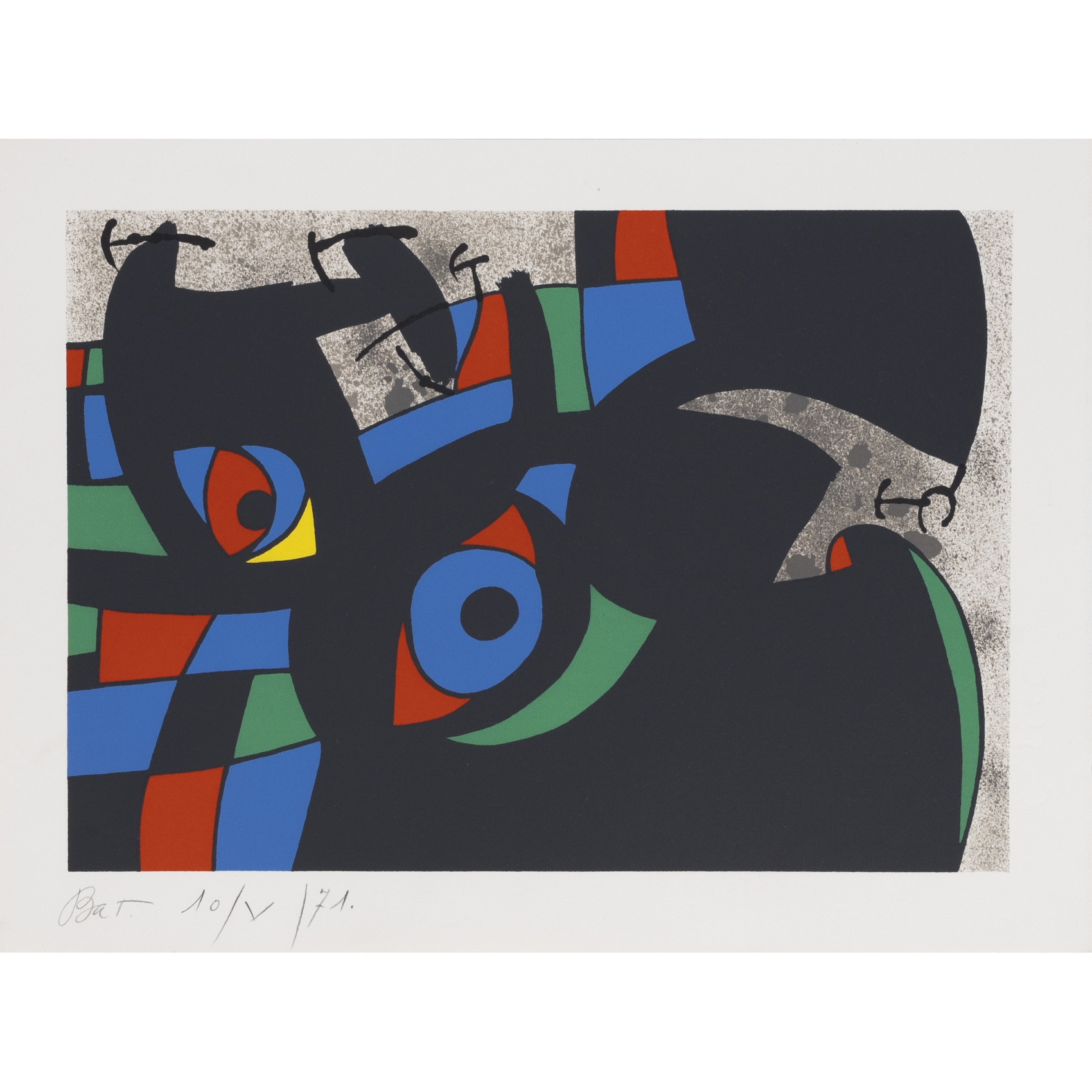 Litografía sobre papel. Firmada en sello en seco, justificada B.A.T. y fechada en 1971 a lápiz.