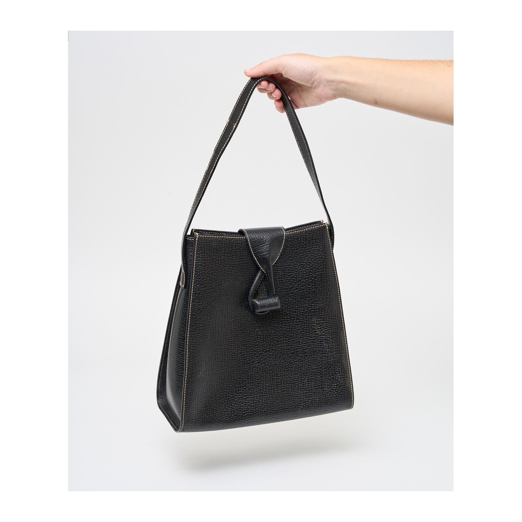 LOEWE. Bolso de mano en piel tonalidad negra con cierre de botón y pequeño bolsillo interior. En buen estado. Presenta leve marca de uso el cierre.