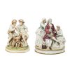 Niños cazando y La sastrería. Pareja de figuras en porcelana española esmaltada, segunda mitad del s.XX. Marcas en la base.